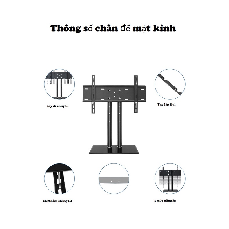 Chân đế Tivi để bàn đa năng 40-75 inch, chân đế tivi mặt kính cường lực cao cấp cho các loại tivi M7