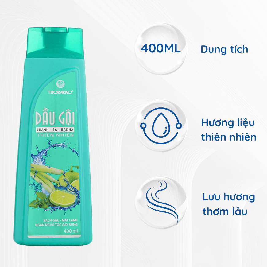 Gội Xả Thorakao 2IN1 Chanh Sả Bạc Hà Sạch Sâu Suôn Mượt Giảm Gàu Gãy Rụng Chính Hãng 400ML