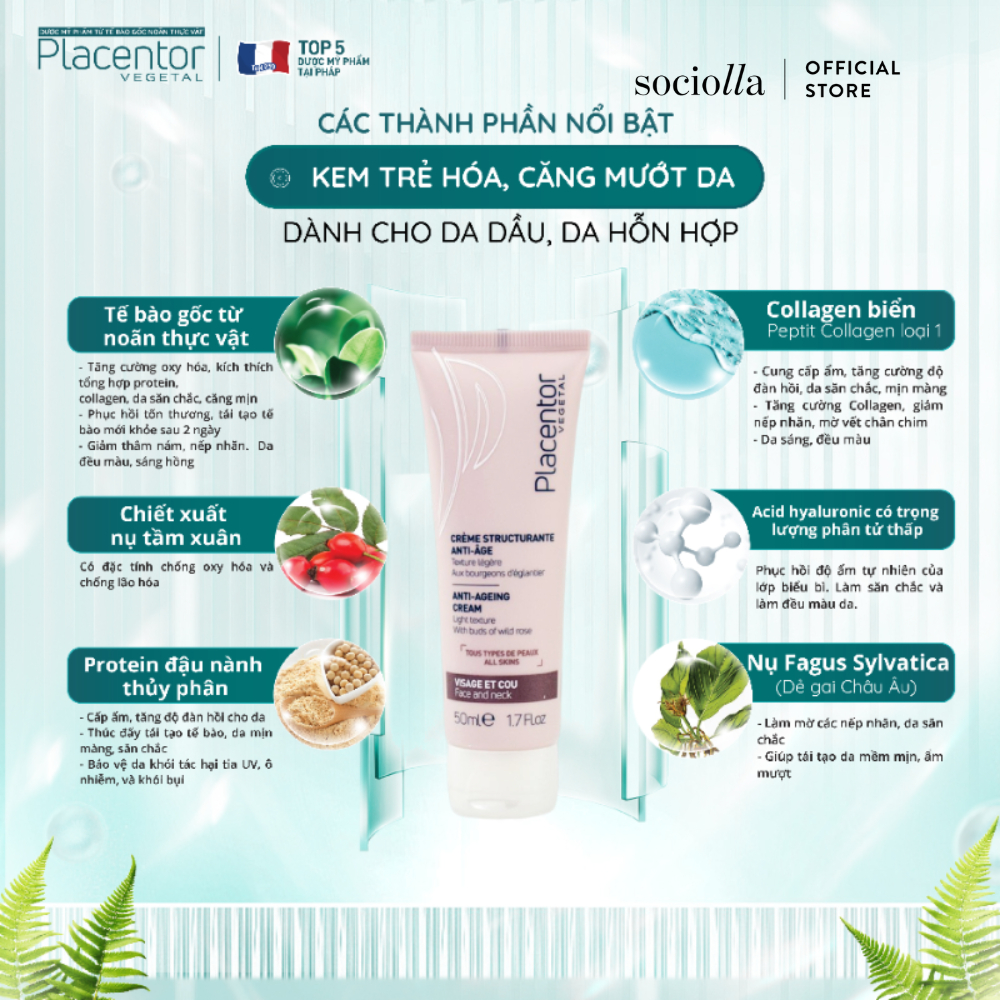 Kem Dưỡng Trẻ Hóa & Căng Mướt Dành Cho Da Dầu & Da Hỗn Hợp Placentor Vegetal Anti-Ageing Cream