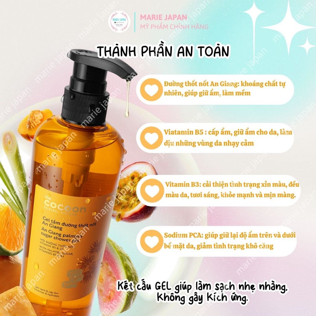 Gel Tắm Đường Thốt Nốt An Giang Cocoon Làm Sạch Dịu Nhẹ Dưỡng Ẩm Mềm Da Chai 500ml
