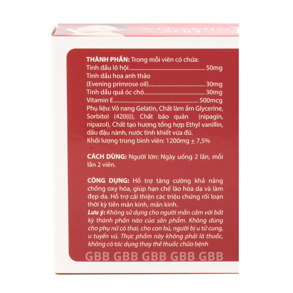 Viên uống Vitamin E 500 hỗ trợ cấp ẩm da, giảm lão hoá, làm đẹp da (hộp/30 viên)