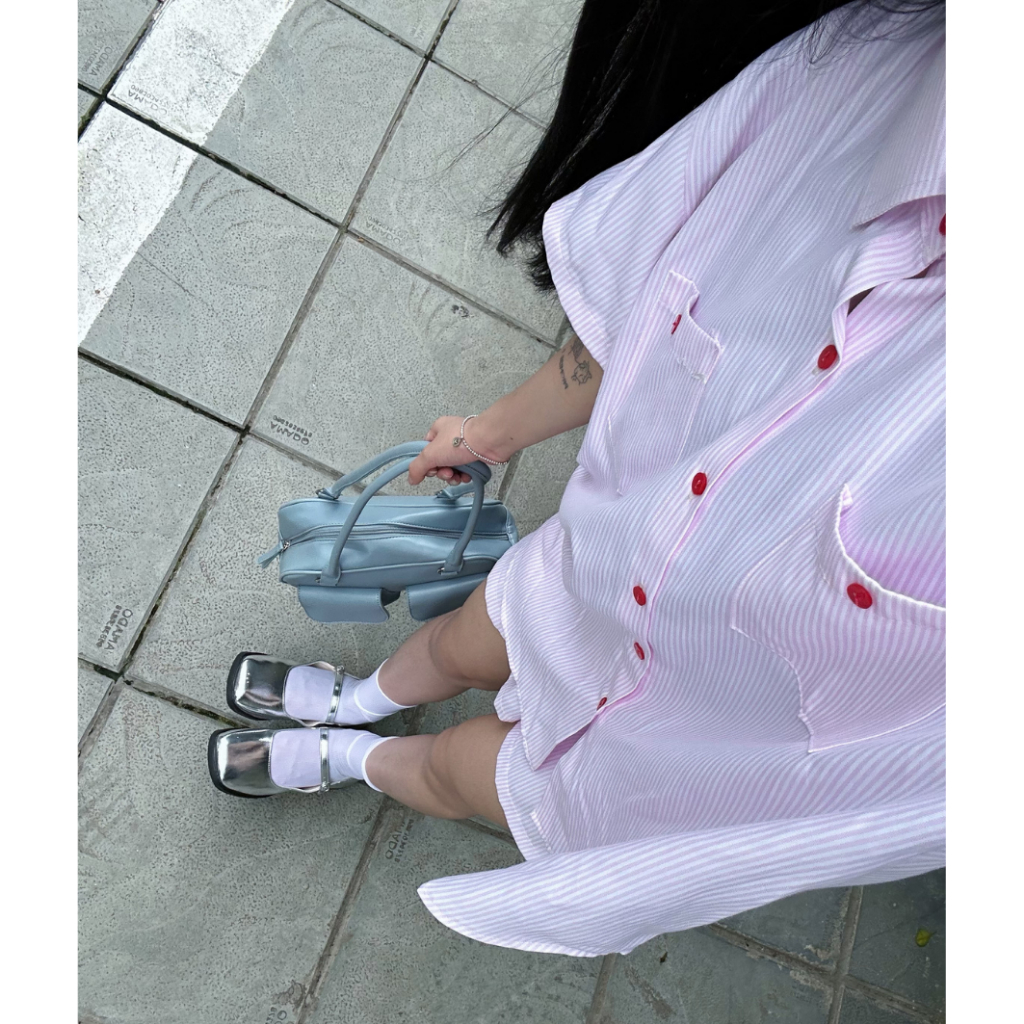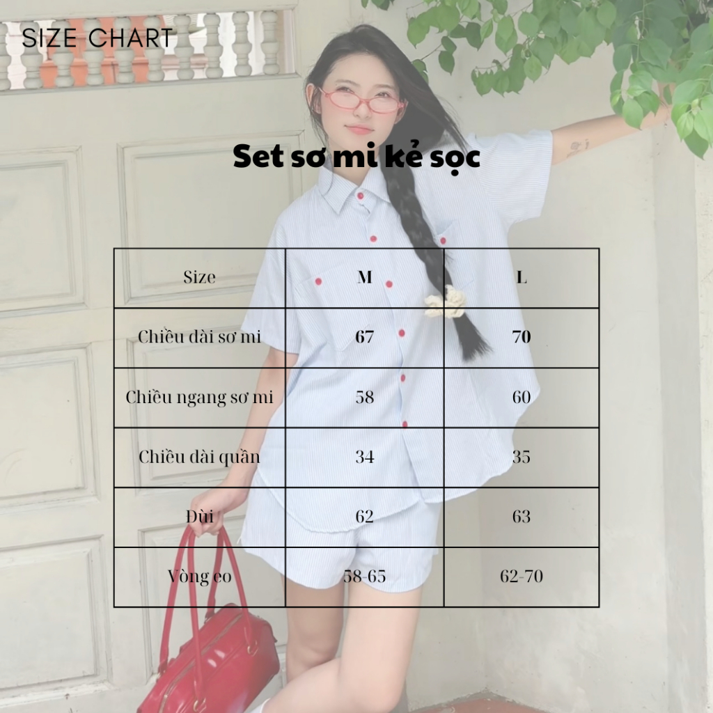 Set áo sơ mi kẻ ngắn tay form rộng kèm quần sooc chất liệu thô Hàn TOSUN E01