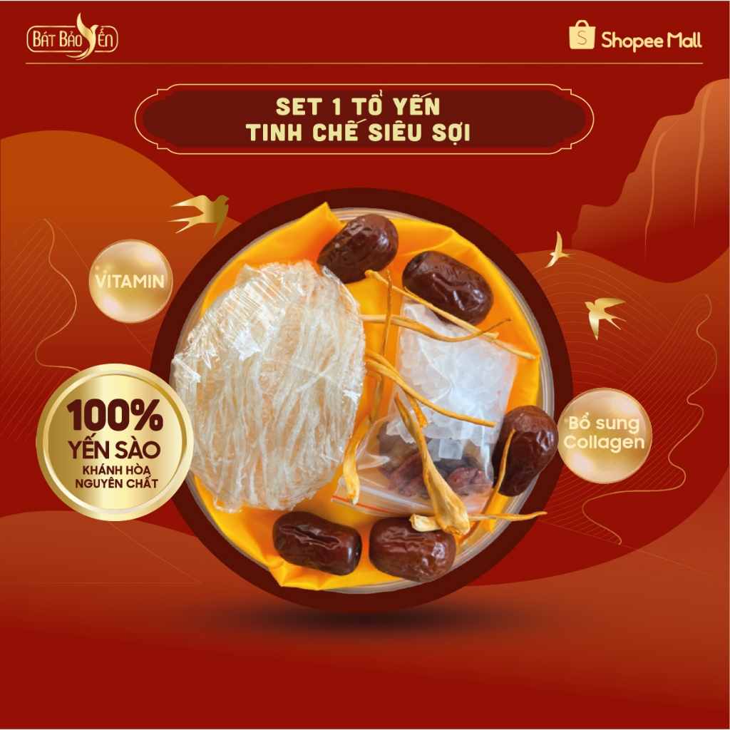 Set yến tự chưng từ tổ yến tinh chế siêu sợi loại 1 và nguyên liệu tinh chế Bát Bảo Yến