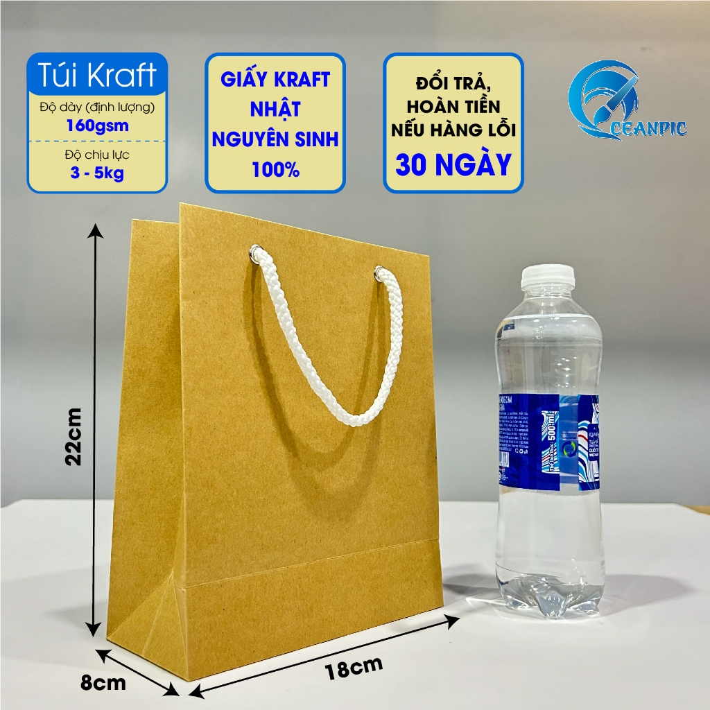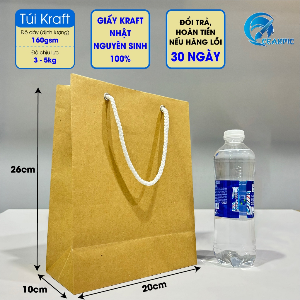 Set 10 Túi giấy kraft Nhật Ceanpic size trung, quai dây dù, giấy dày 160 gsm, cứng cáp, sang trọng.