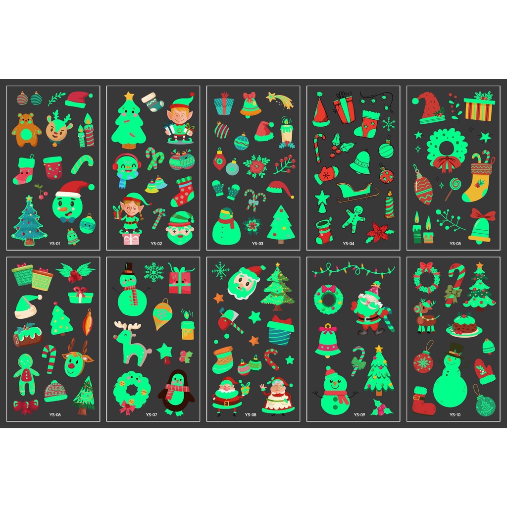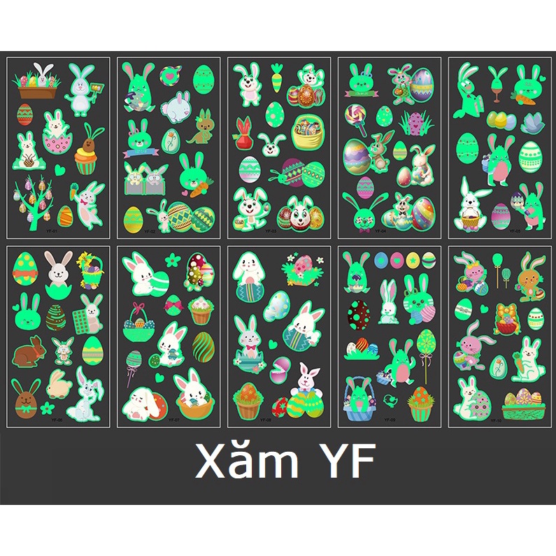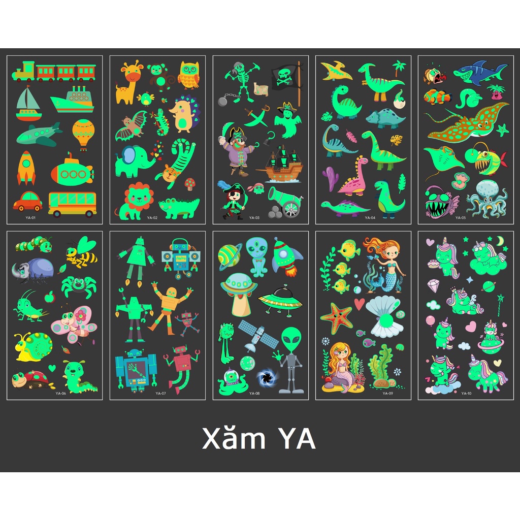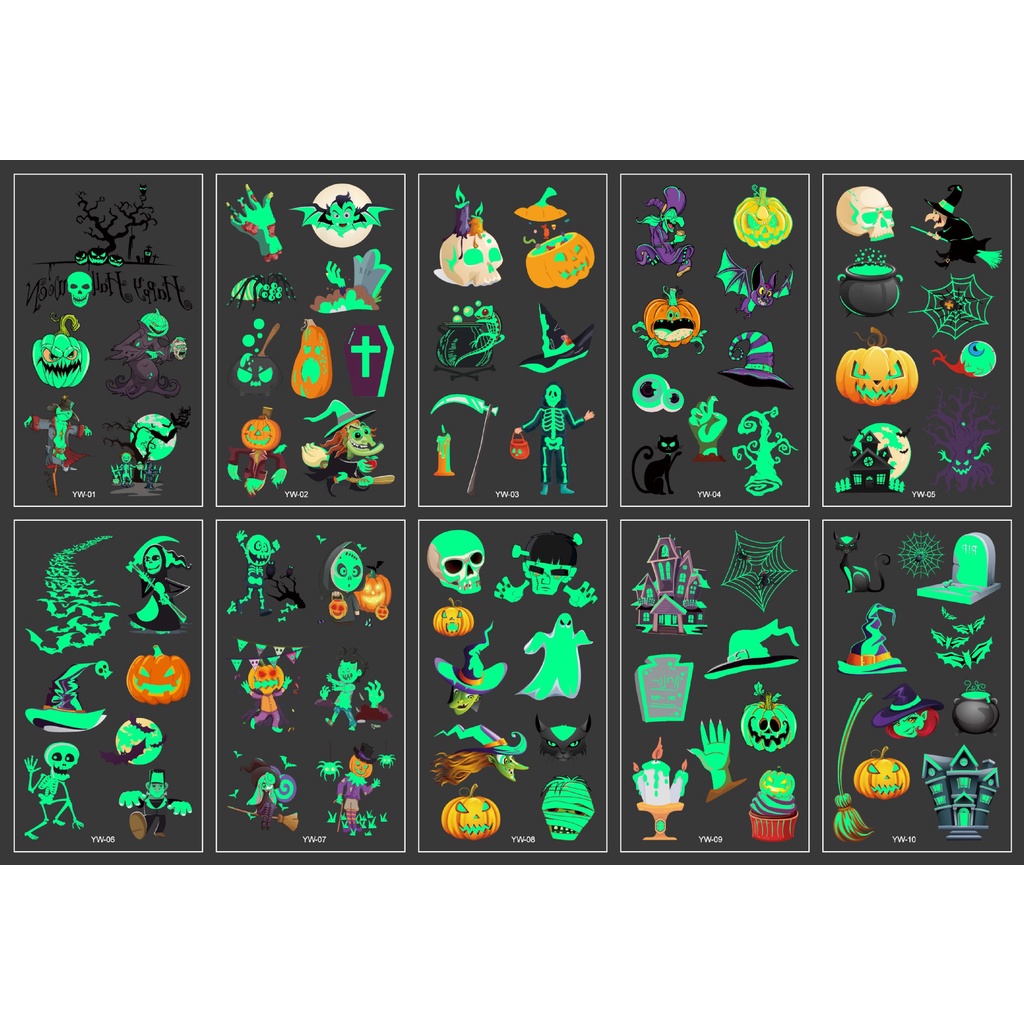 Set 10 Tờ Hình Xăm Miếng Dán Phát Sáng Halloween Cướp Biển Xe Lửa Máy Bay Legaxi