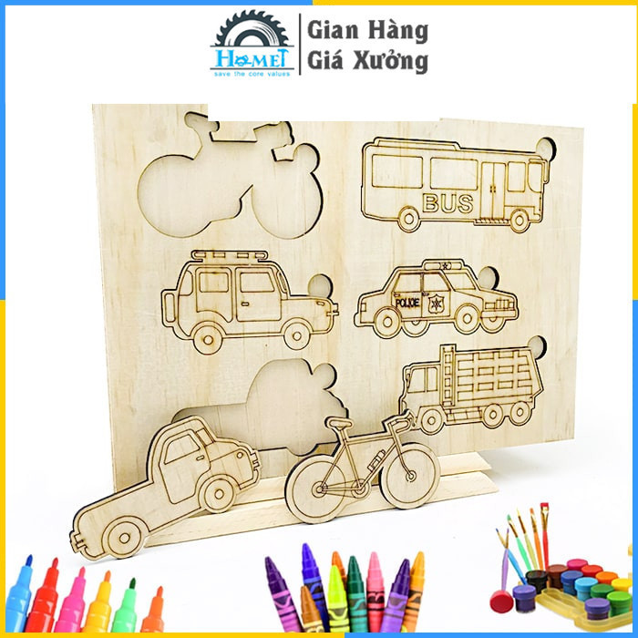Set 2 Bộ Sticker Gỗ Trang Trí Siêu Hot Về Chủ Đề Xe (HAMET_BXE1) Gồm Nhiều Sticker Tô Màu Các Loại Xe Độc Đáo.