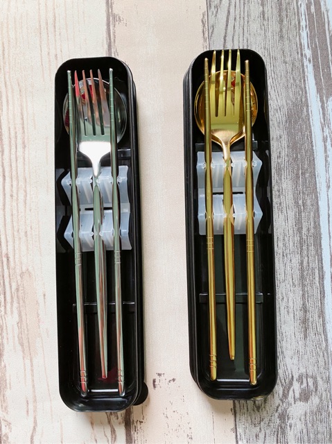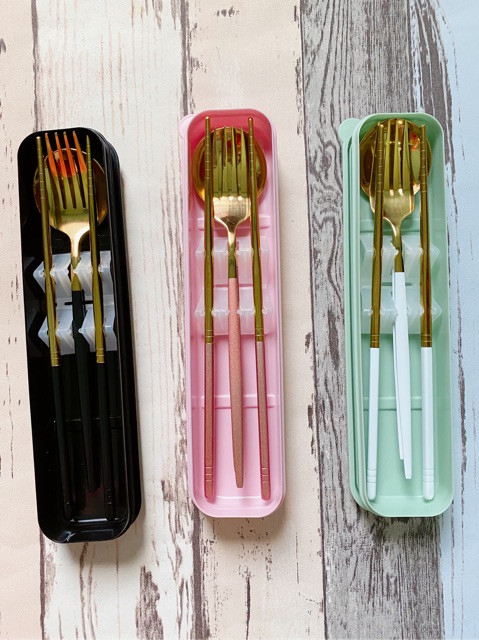 Set 3 Món Muỗng Đũa Nĩa Inox Cao Cấp Phủ Bóng Mạ Vàng Sang Trọng #C403