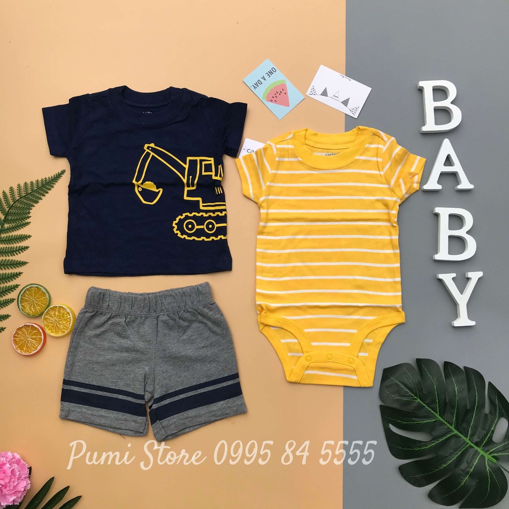 Set 3 món áo ,bodysuit kèm quần short bé trai Carter's Striped Cotton