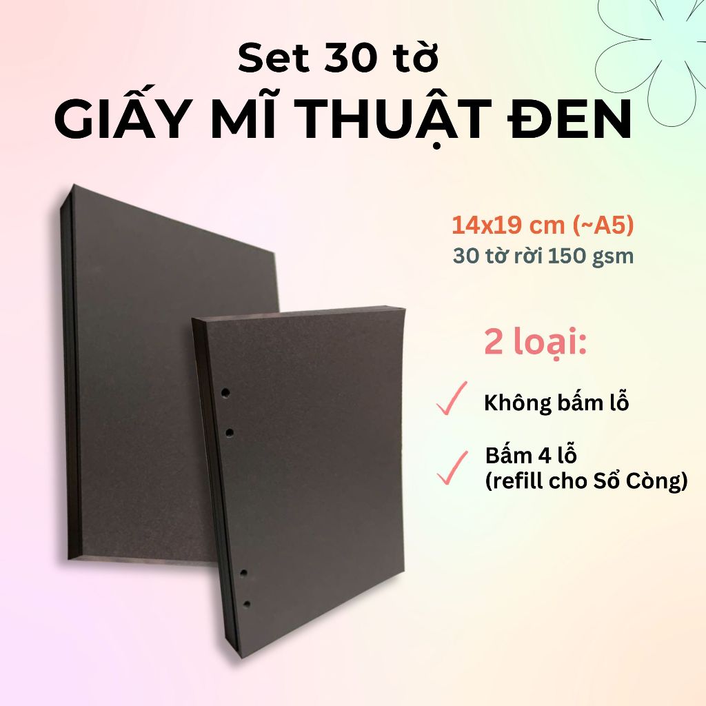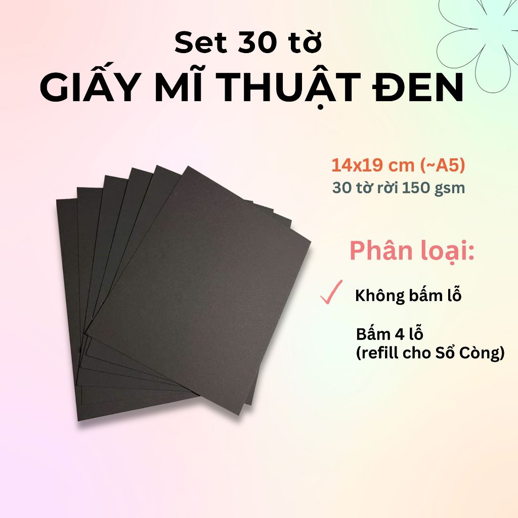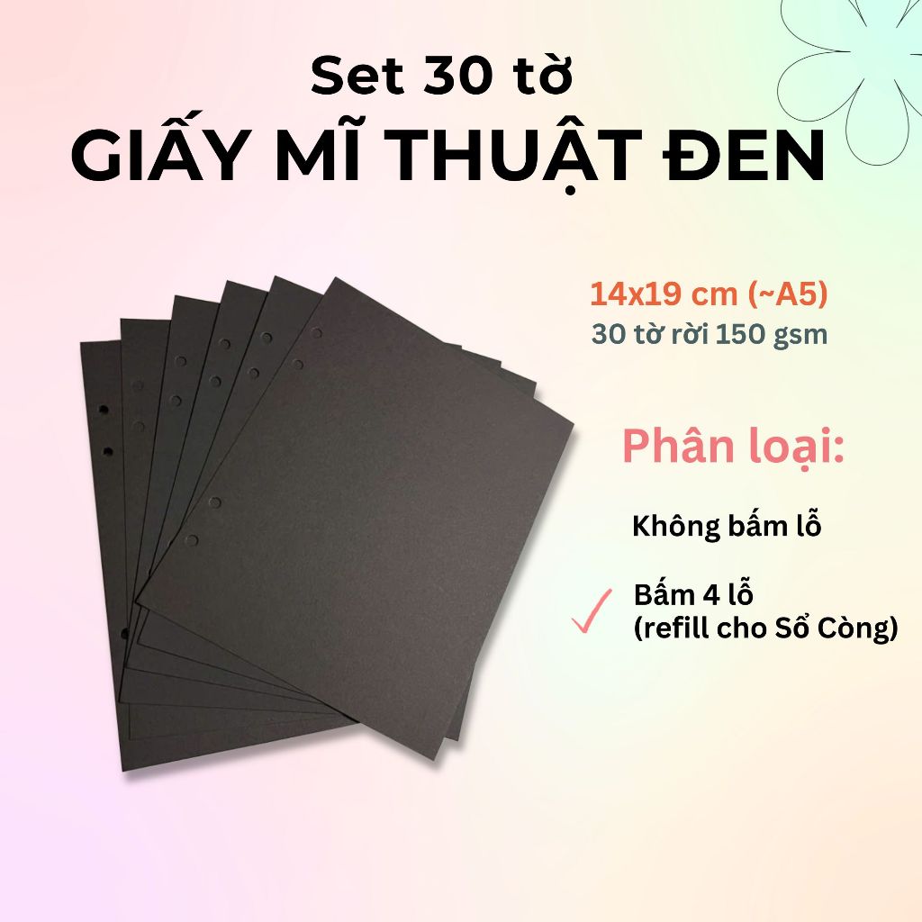 Set 30 tờ Giấy mỹ thuật màu đen dày 150gsm - Refill Sổ còng 14x19 cm (xấp xỉ A5)