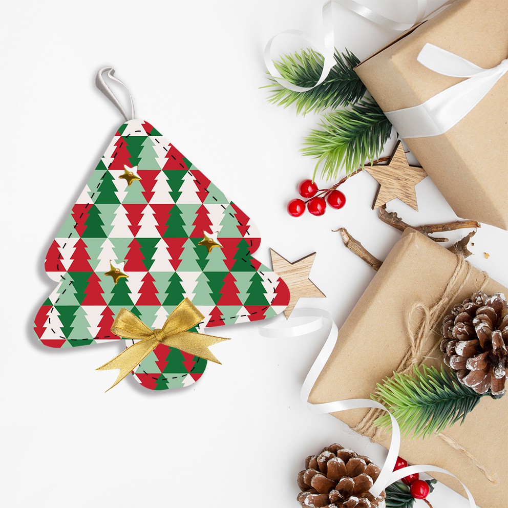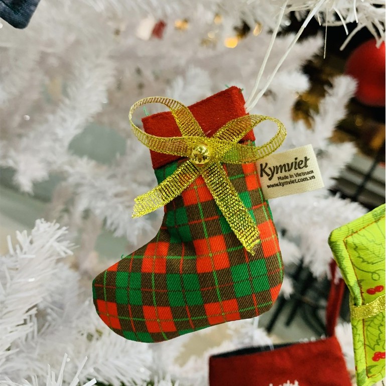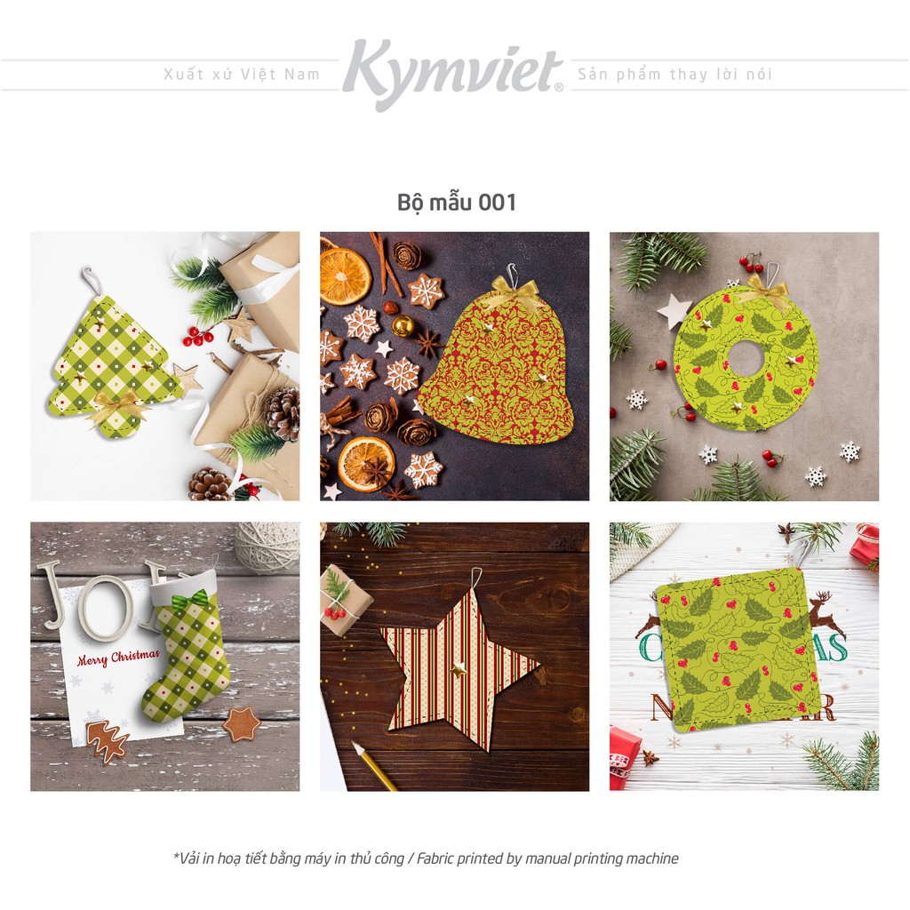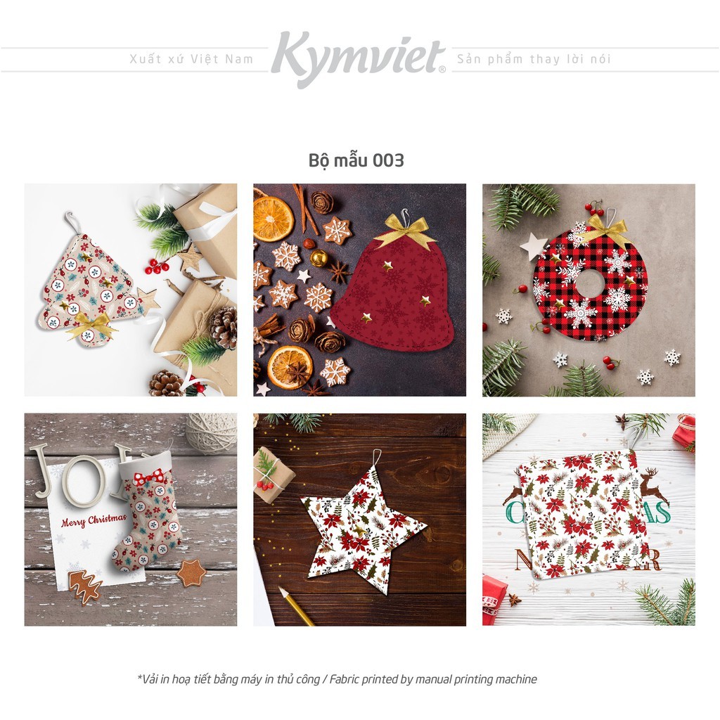 Set 6 Phụ Kiện Trang Trí Giáng Sinh KYMVIET Chất Liệu Vải In Họa Tiết Craft