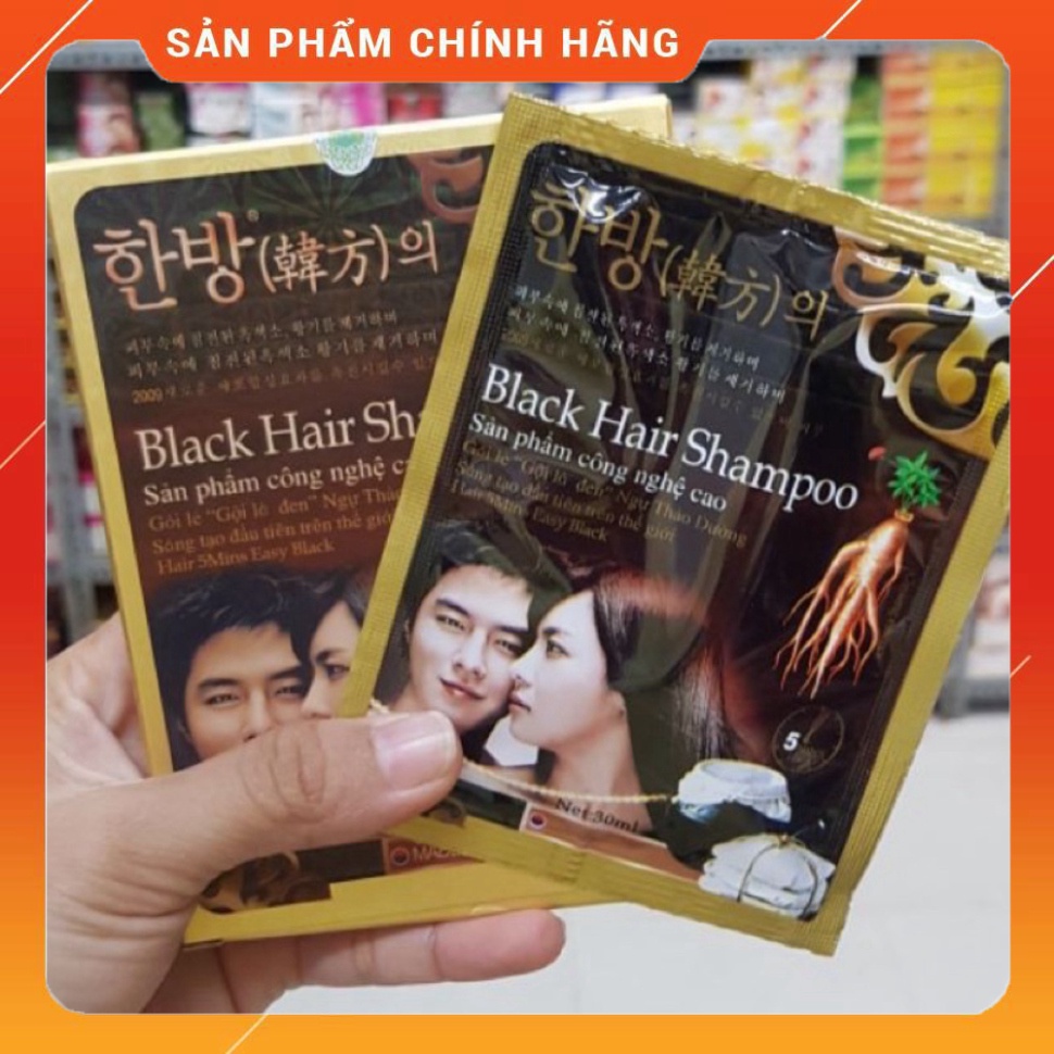 Dầu gội đen tóc Black hair shampoo gội là đen của Hàn quốc(1 dây 10 gói)