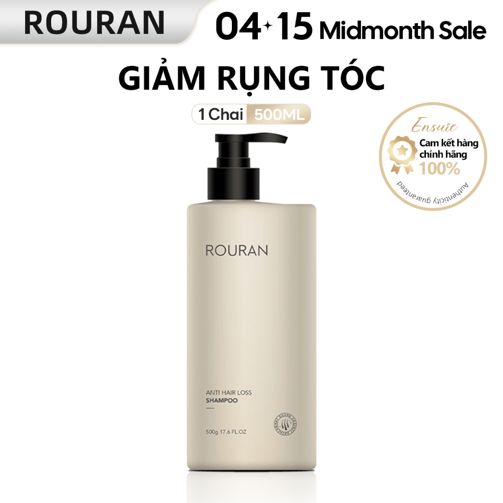 Rouran Dầu gội ngăn rụng tóc Dung tích 500ML Giảm rụng tóc rõ rệt Kiểm soát dầu Mềm Mượt Tạo bọt dày