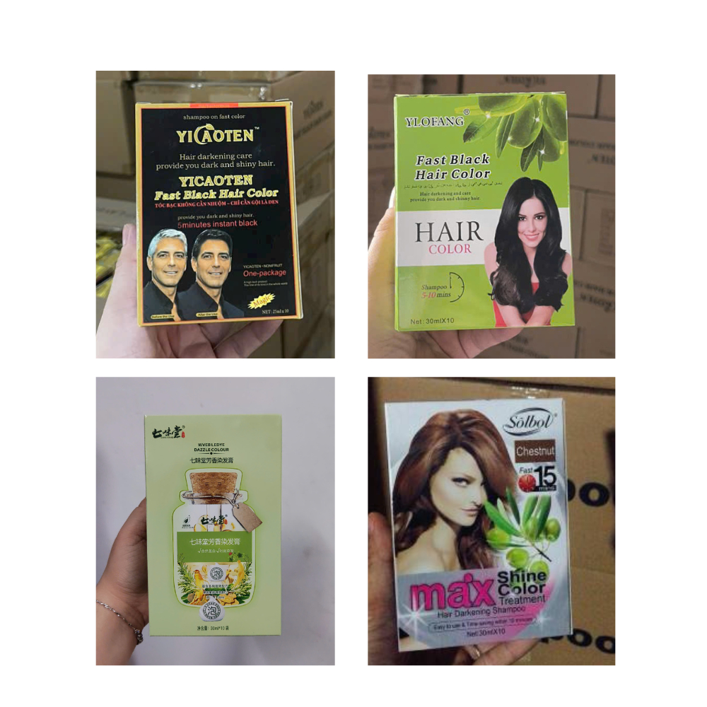 Hộp 10 Gói Dầu Gội Nhuộm Đen Tóc/ Nâu Tóc Chính Hãng Yicaoten/Ylofang/Qiweitang/Sôlbol (30ml/Gói)