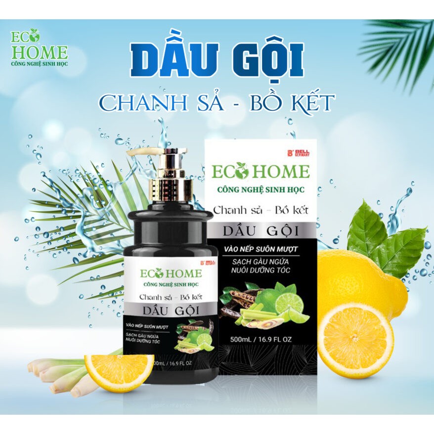 Dầu gội bồ kết chanh xả công nghệ sinh học 500ml ECOHOME Kim Ngân Store dưỡng ẩm tóc, mềm mượt,óng ả, lưu hương lâu