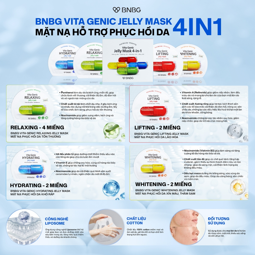 Hộp 10 miếng mặt nạ BNBG Vita Genic Jelly Mask 30ml dưỡng trắng, phục hồi, cấp ẩm, ngừa lão hóa