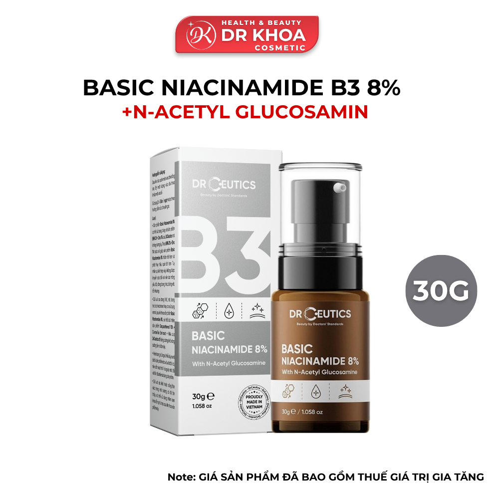 Serum DrCeutics B5 Basic, Niacinamide B3 8%, B3 12%, HA+NMFs Cấp Ẩm Phục Hồi Da 30g/40g/100g