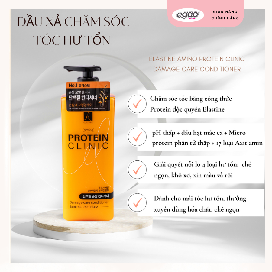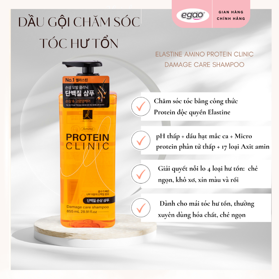 [KOL] Dầu Gội & Dầu Xả Dưỡng Tóc Elastine Amino Clinic Hỗ Trợ Phục Hồi Hư Tổn, Làm Sạch Và Làm Mềm Mượt Tóc 855g