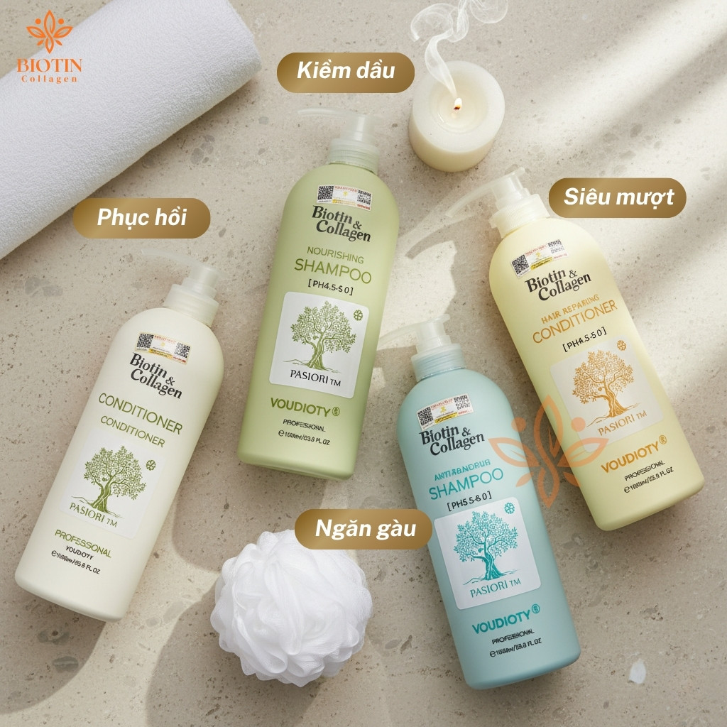 Dầu Gội Biotin Collagen Voudioty Giảm Rụng, Ngăn Gàu, Kiềm Dầu, Phục Hồi Tóc Hư Tổn 500ml/1000ml (2021)
