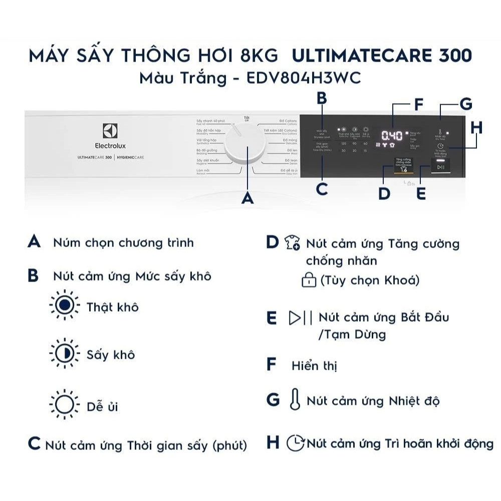 EDV804H3WC | EDV904H3WC - Máy Sấy Thông Hơi Electrolux UltimateCare 300 - Trắng [Toàn Quốc]{GIẢM 10%}