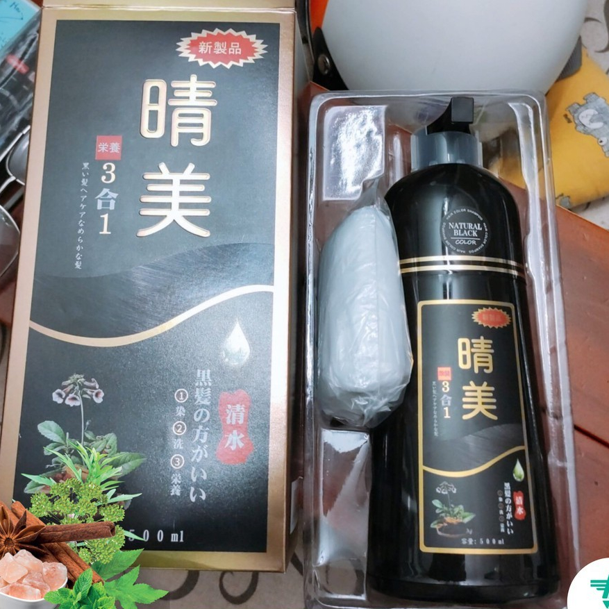 Dầu gội nhuộm tóc Komi Nhật Bản chính hãng màu đen giúp phủ nhuộm tóc, phủ bạc nhanh chóng chai 500ml