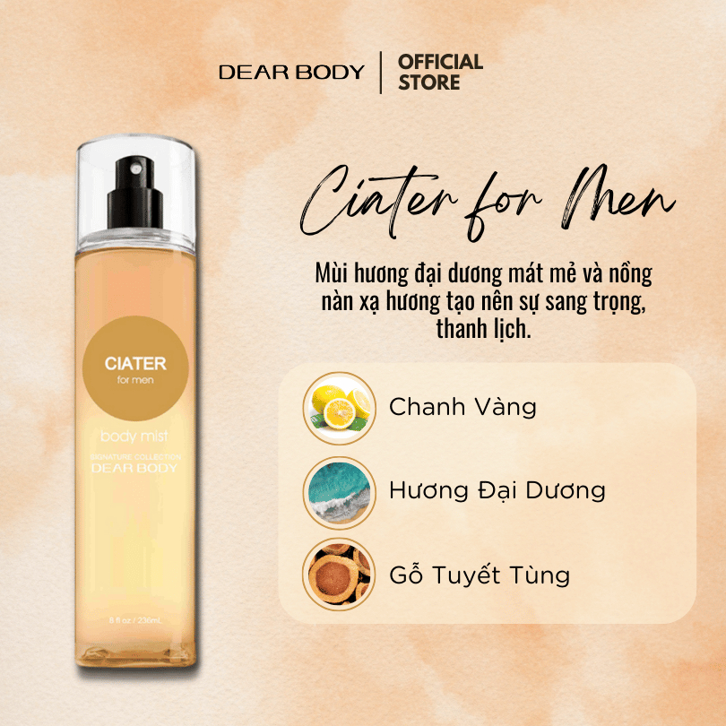 Xịt Thơm Toàn Thân Cho Nam DEAR BODY Fine Fragrance Body Mist For Men 236ml