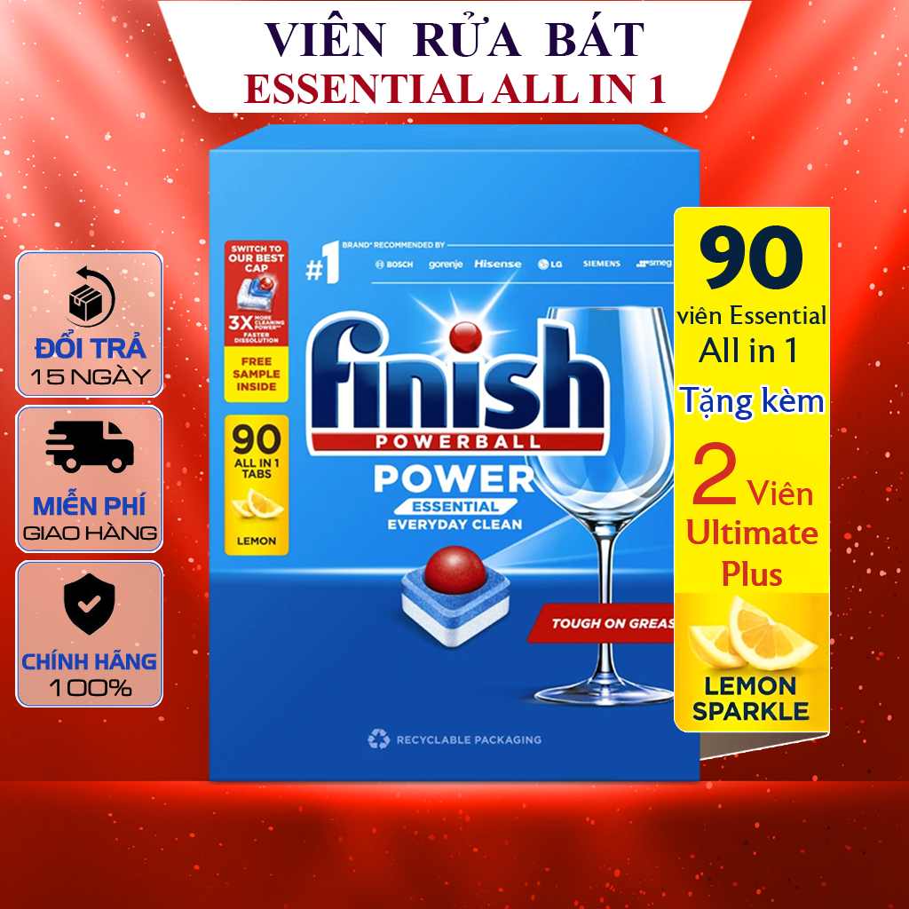 Viên rửa bát Finish Power Essential All in 1 - Hộp 100 viên Hương chanh cho Máy rửa chén bát
