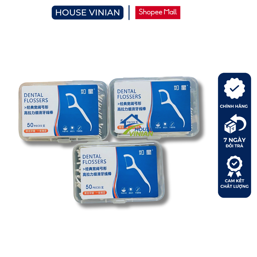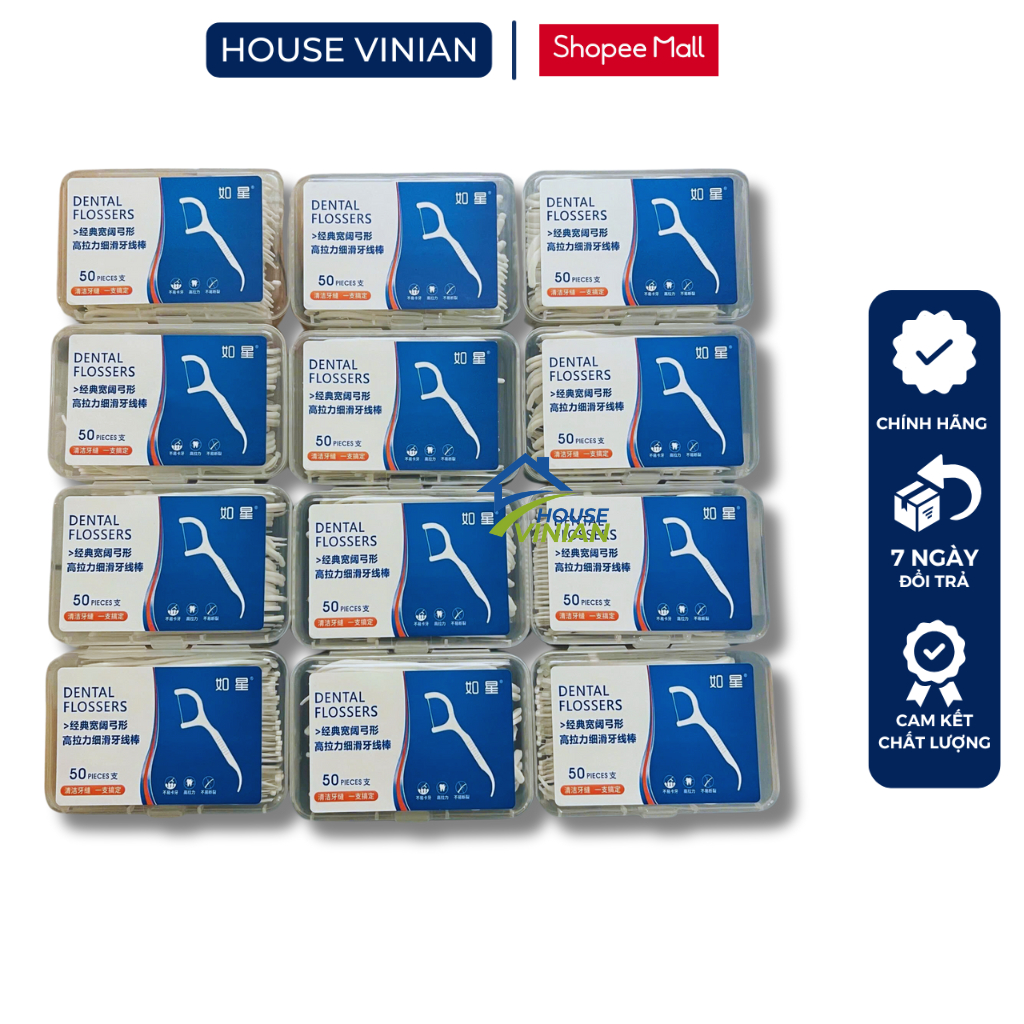 Combo 12 Hộp 600 Chiếc Tăm Chỉ Nha Khoa Xỉa Răng, Vệ Sinh Sạch Sẽ Kẽ Răng Chân Nướu Chăm Sóc Răng Miệng HOUSE VINIAN
