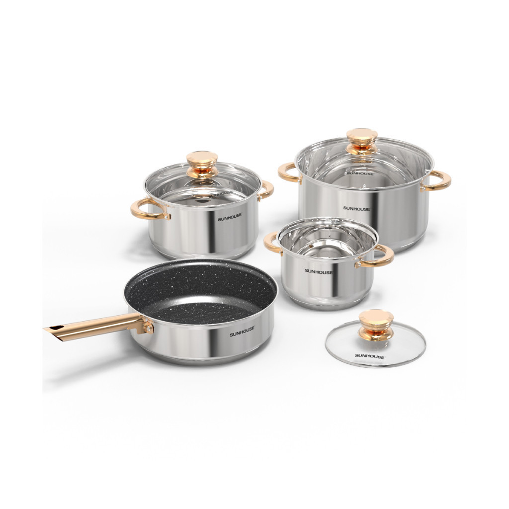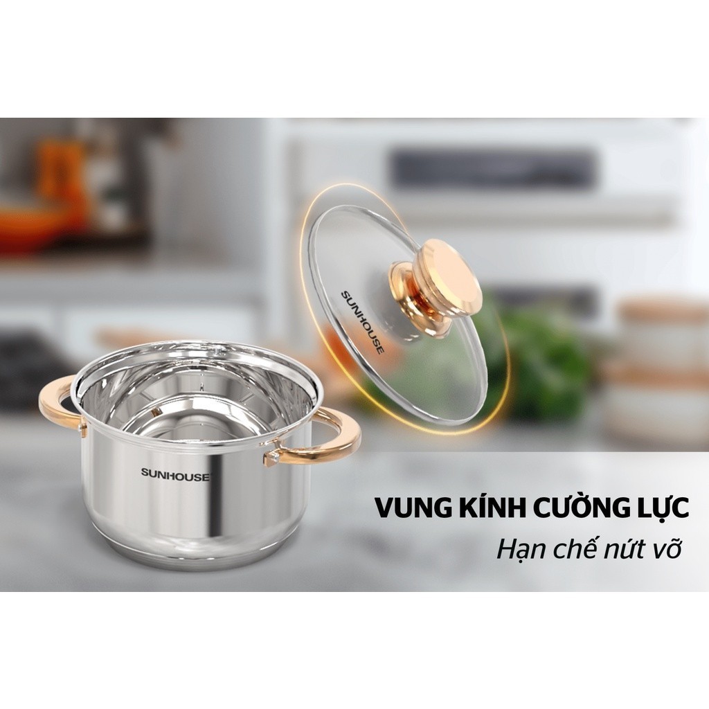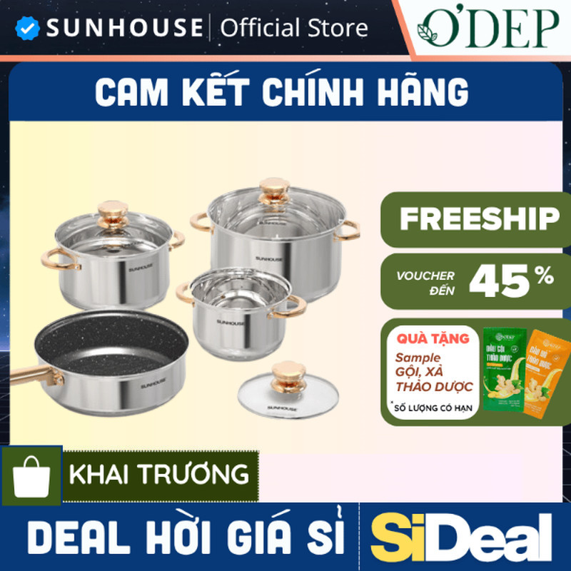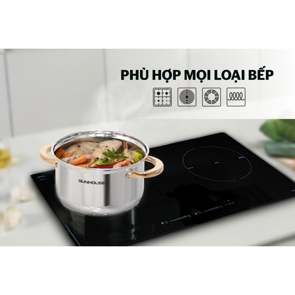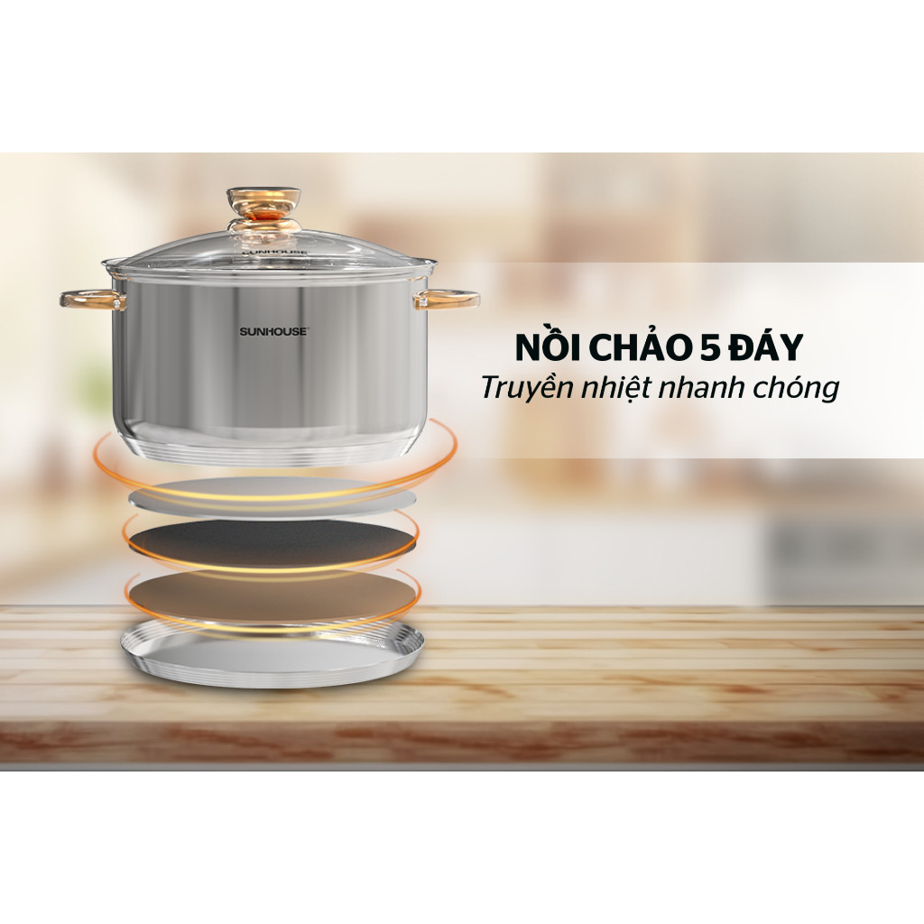 Bộ nồi kèm chảo inox 5 đáy Sunhouse SHG789 - Dùng mọi loại bếp, đáy từ - SIDEAL SIO