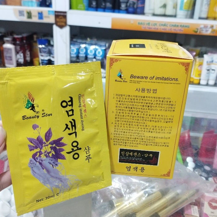 Nguyên hộp (10 gói) dầu gội nhuộm tóc phủ bạc Beauty Star Hàn Quốc ( 30ml x 10 gói) - Natural Black