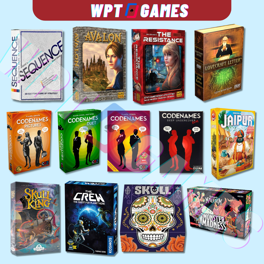 Tổnghợp bộ đồ chơi thẻ bài boardgame sequence avalon resistance mayhem madness codenames pictures jaipur skull king crew