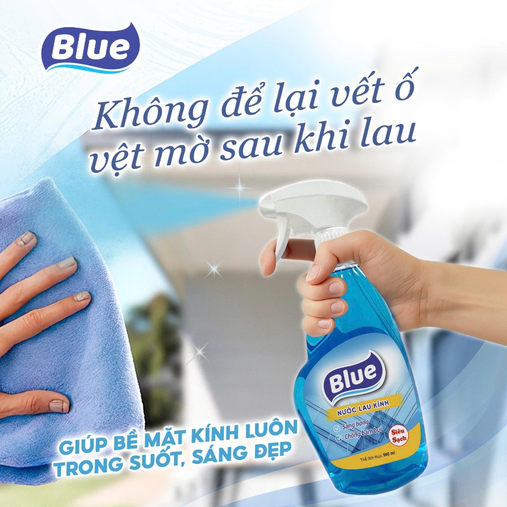 Nước Lau Kính Chuyên Dụng Blue 560ML, Làm Sạch Sâu, Giữ Kính Sáng Bóng, Chống Bám Bụi Trở Lại