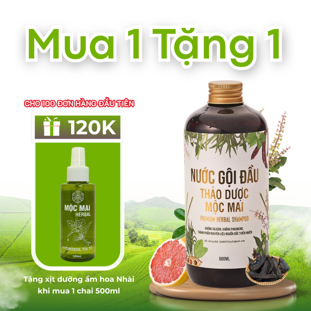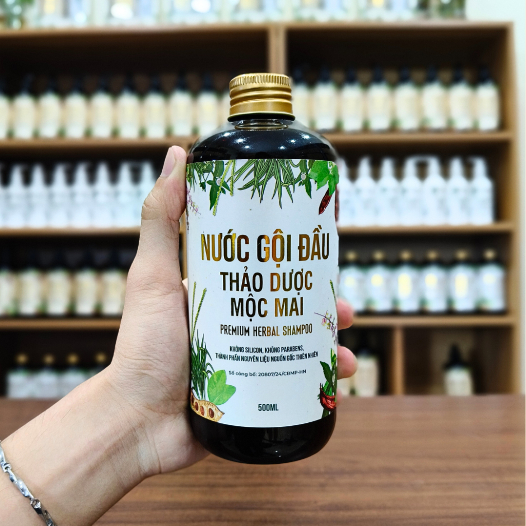 Nước Gội Thảo Dược Mộc Mai Herbal 500ml - Hỗ Trợ Mọc Tóc, Giảm Gẫy Rụng, Suôn Mượt Dành Cho Da Dầu, Tóc Nhanh Bết