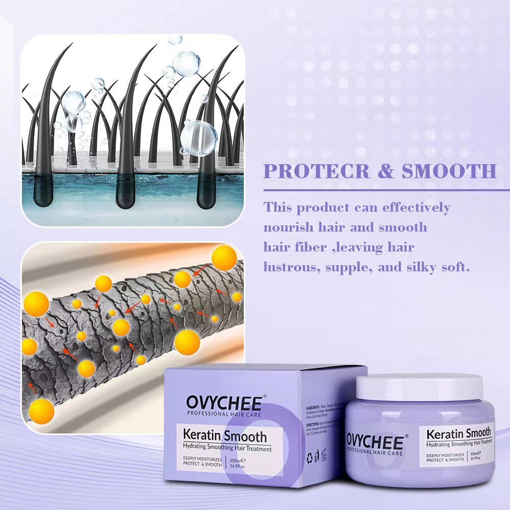 Kem Ủ Tóc KERATIN OVYCHEE 500ML Dưỡng Ẩm Phục Hồi Tóc Hư Tổn Siêu Mềm Mượt Hương Nước Hoa Cao Cấp