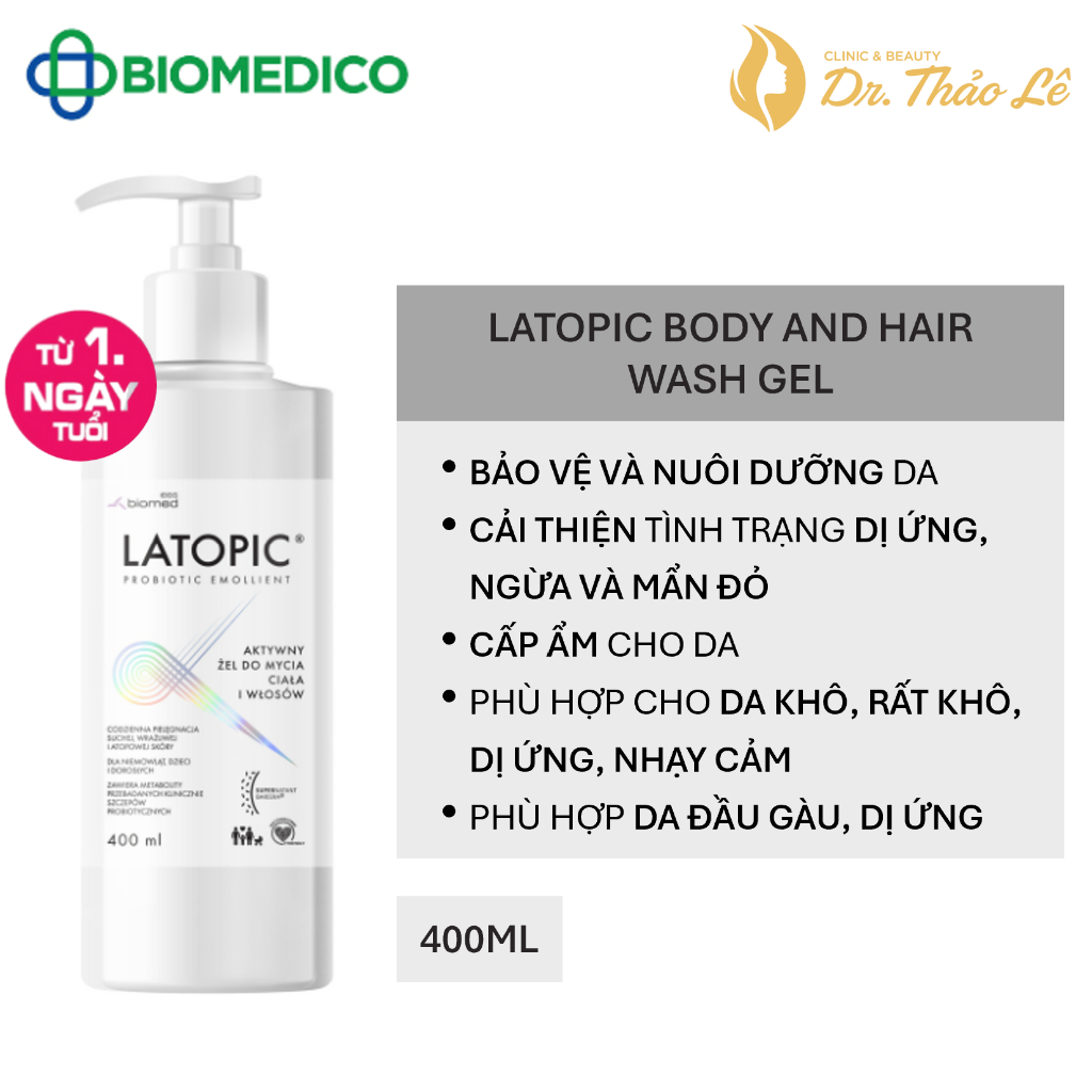 Gel Tắm Gội LATOPIC PROBIOTIC EMOLLIENT Body and Hair Wash Gel Cho Da Nhạy Cảm, Dị Ứng/Kích Ứng