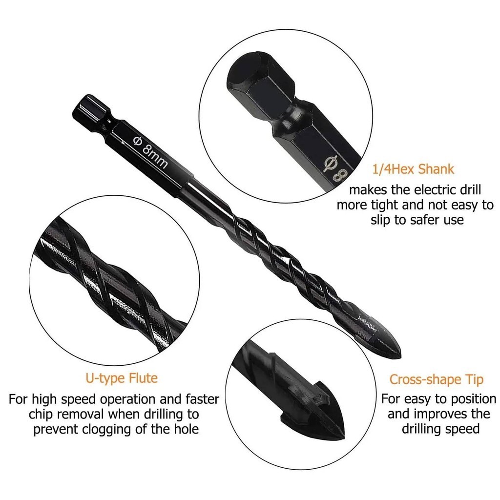 Bộ 7 mũi khoan đa năng chân lục giác 4 cạnh thép đen Nhật Kapusi JAPAN, khoan sắt, khoan kính thủy tinh, gạch men đá gốm