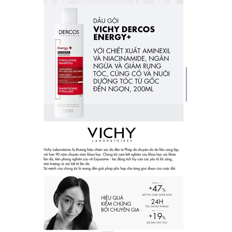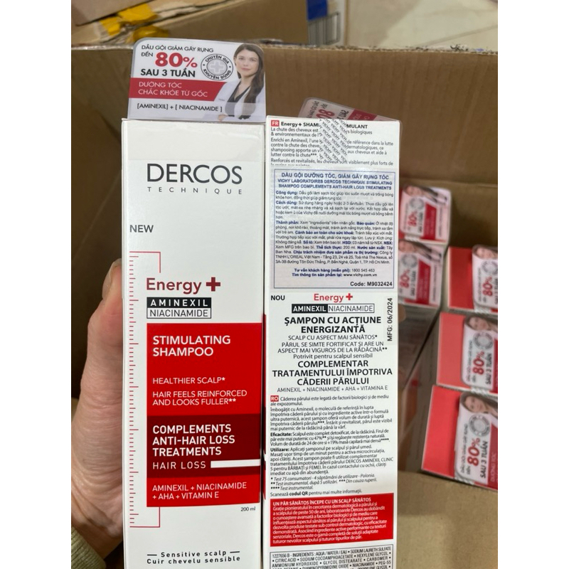 Dầu gội ngăn ngừa và giảm rụng tóc Vichy Dercos Energising Aminexil Stimulating Shampoo Hairloss 200ml