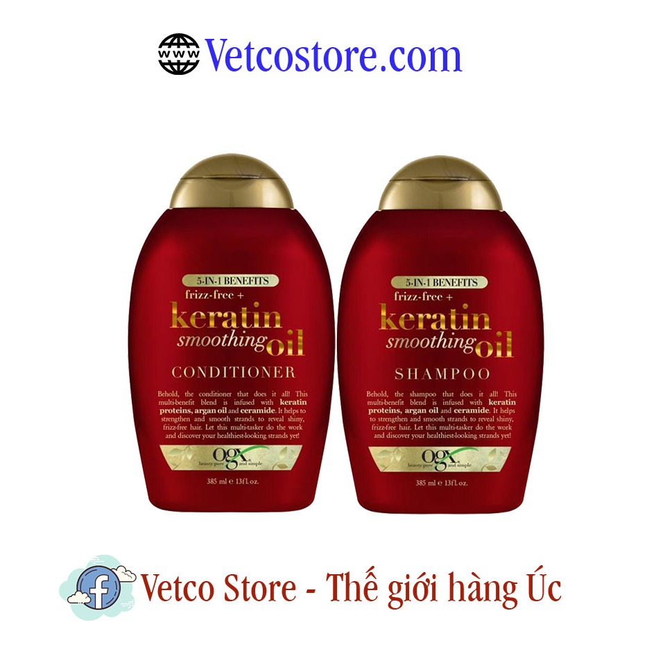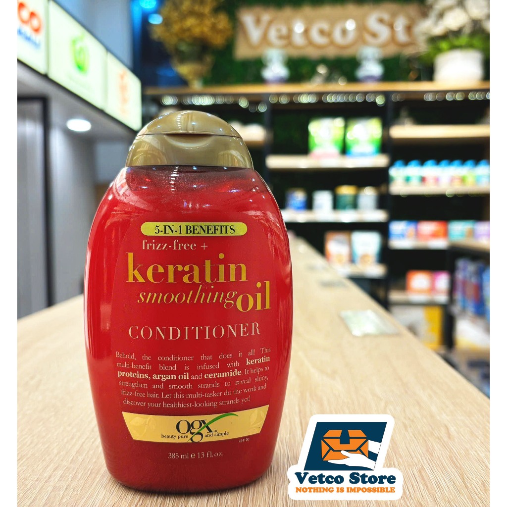 Dầu Gội & Xả Ogx Frizz Free + Keratin Smoothing Oil 5 in 1 Benefits Conditioner For Frizzy Hair 385ml