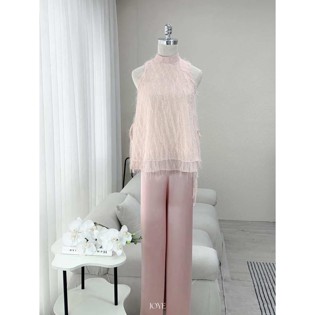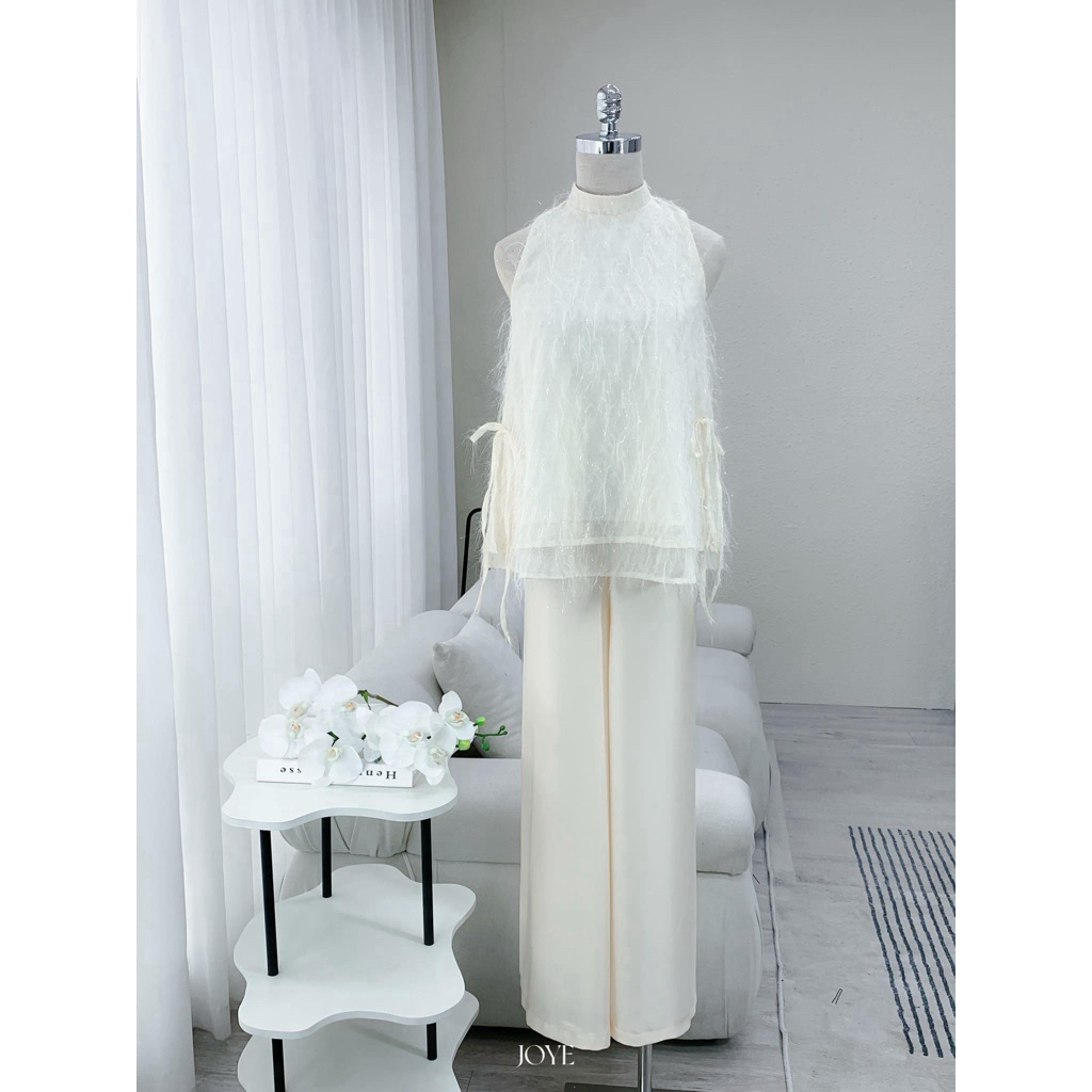BY JOY - Set yếm cổ tròn dáng xuông 2 tà thắt nơ cách điệu bên hông, phía sau xẻ cài cúc ngọc YẾM TRÂN DAO