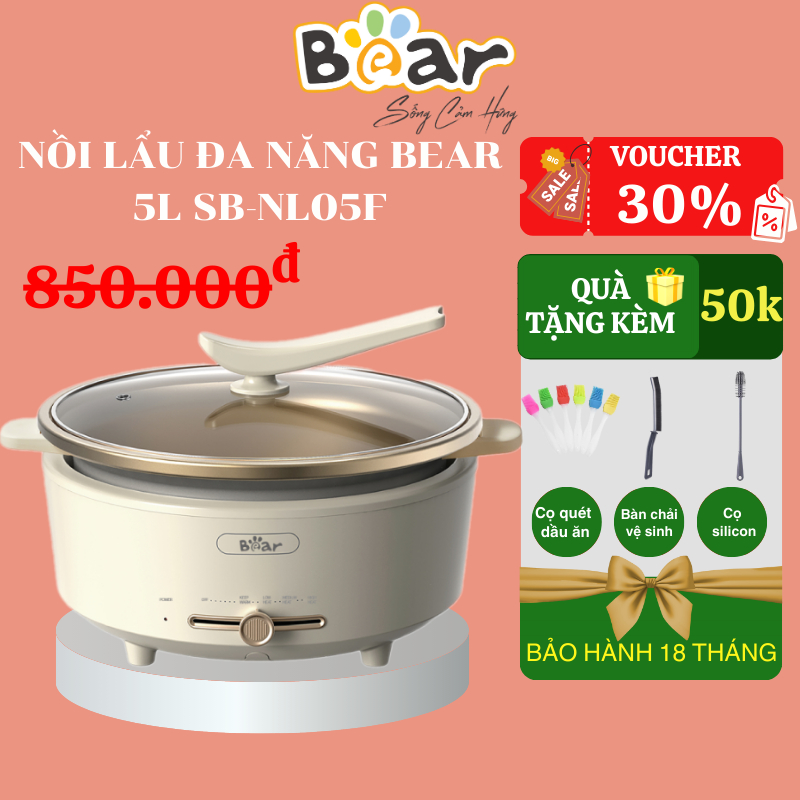 Nồi Lẩu Điện Đa Năng 5L Bear SB NL05F Chiên Xào Nấu Đế Tách Rời Sôi Nhanh Tiết Kiệm Điện Bảo Hành 24 tháng