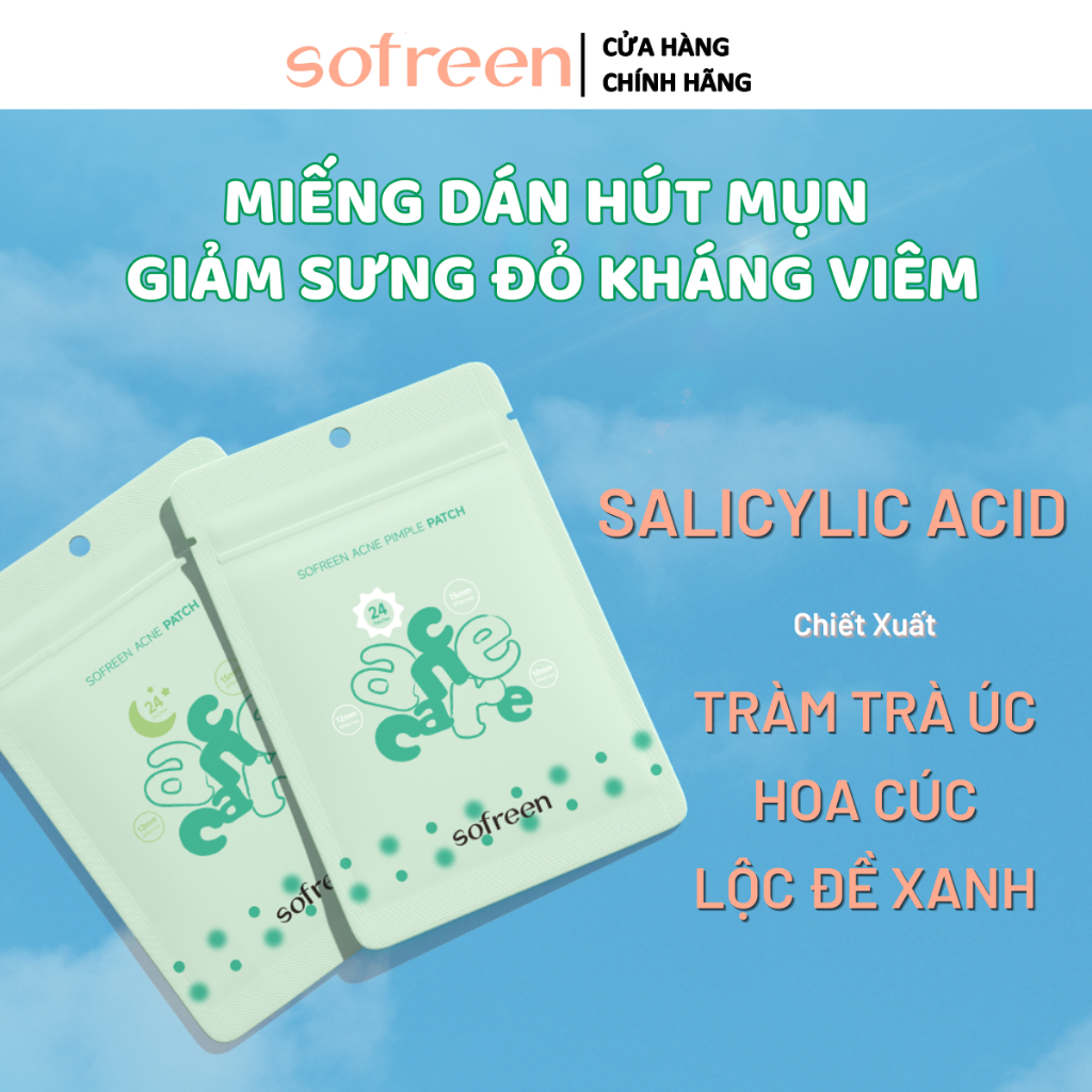 SOFREEN Miếng Dán Hút Mụn Giảm Sưng Đỏ Với Salicylic Acid, Tràm Trà Úc, Hoa Cúc Ngày Và Đêm 24 Miếng |Che Mụn Tự Nhiên|