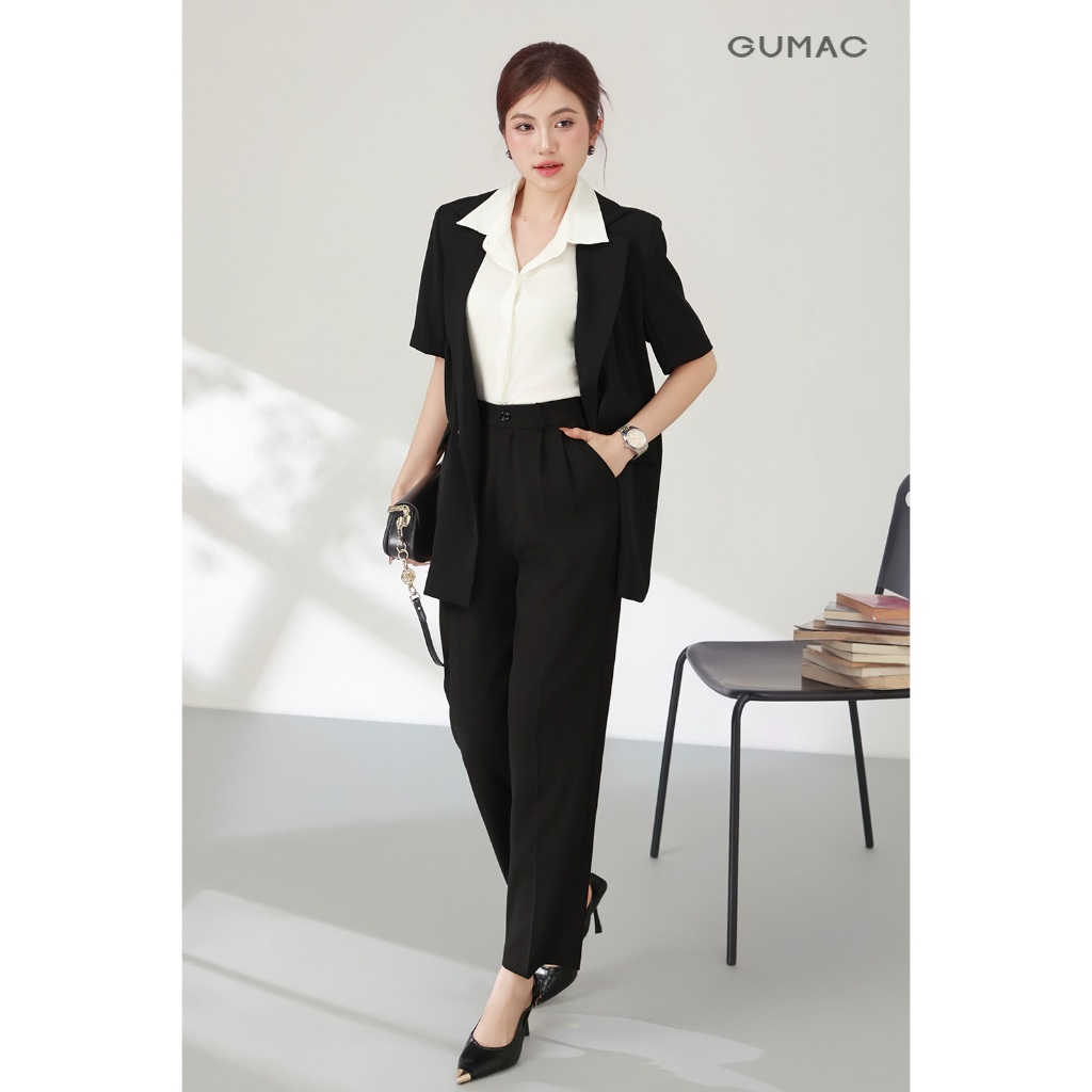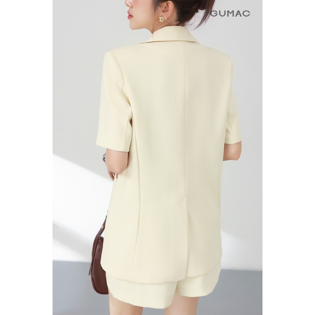 Set lẻ Áo khoác nữ GUMAC vest nút gỗ OWF03028 - Quần short nữ GUMACs chiết ly SHF03037