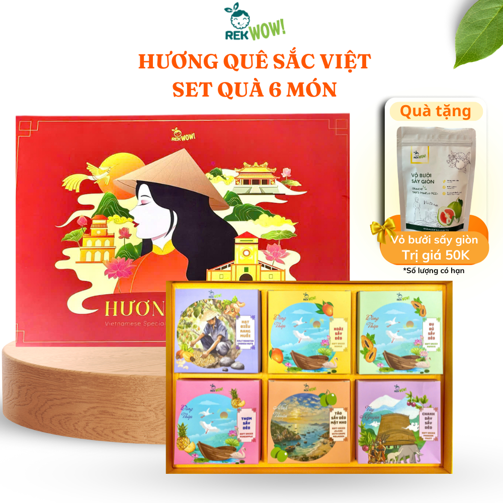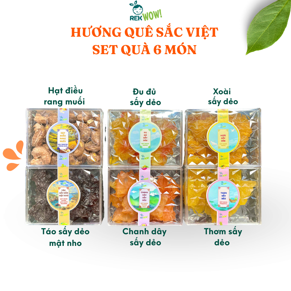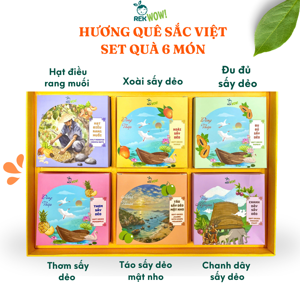 Set quà/hộp quà tặng trái cây sấy dẻo - hạt dinh dưỡng Hương Quê Sắc Việt REK WOW 6 Món