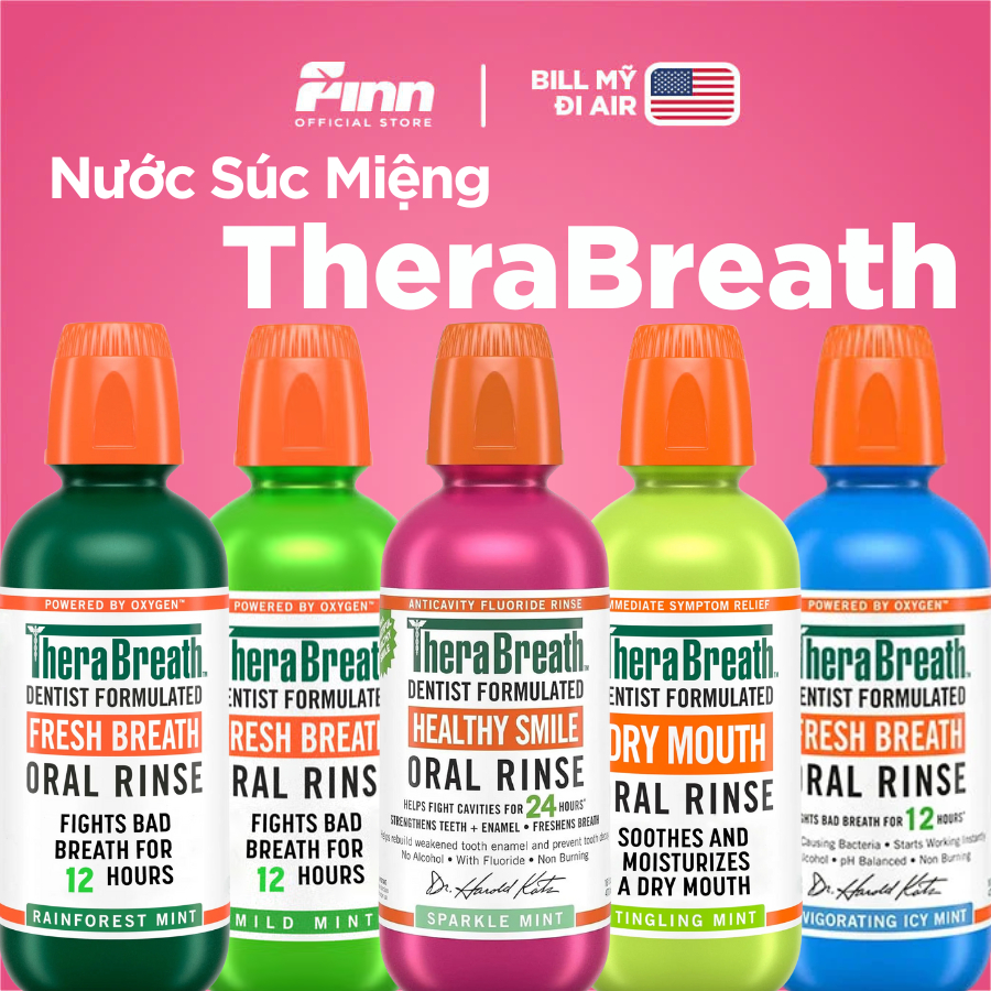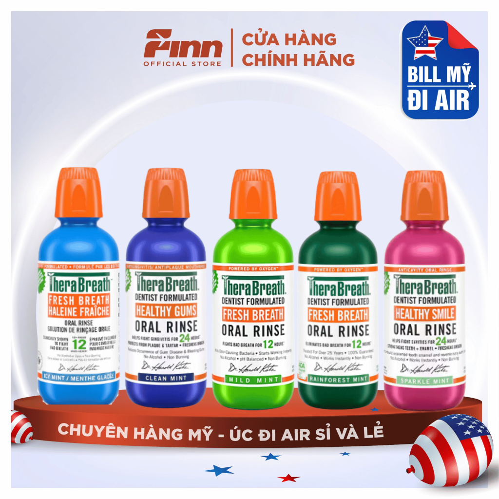 [BILL MỸ AIR] Nước súc miệng TheraBreath Dentist Formulated (Chai) - Công Thức Nha Sĩ, Hơi Thở Thơm Mát Lâu Dài
