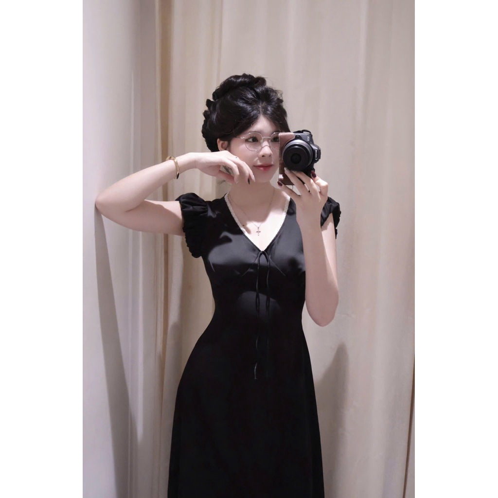 Motphimshop Đầm Lụa Cổ V Phối Ren-RITA DRESS