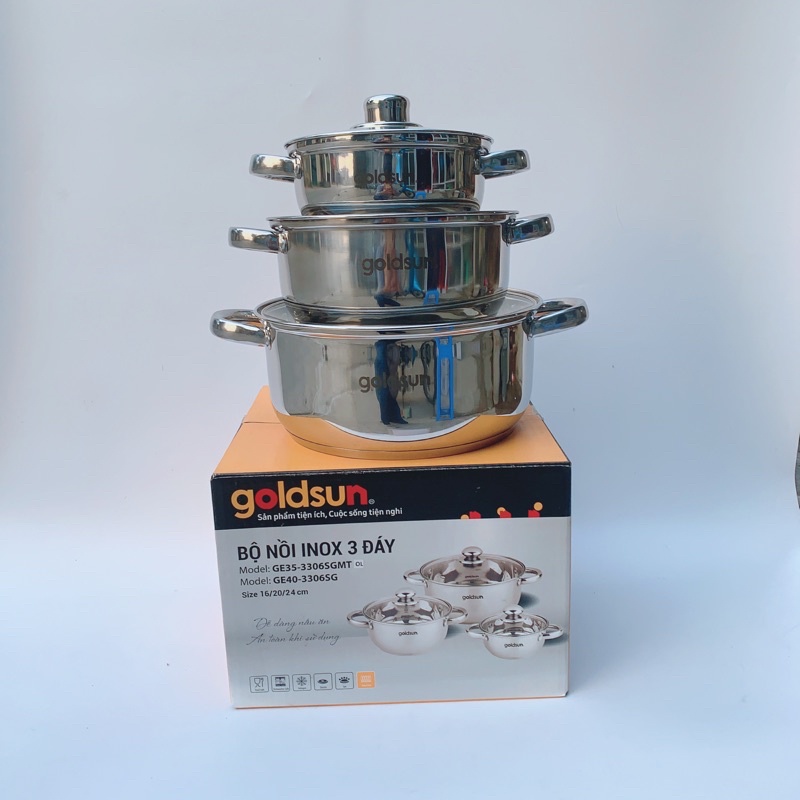 Bộ nồi inox 5 đáy Goldsun Đáy Từ- Việt Nam GE41-3506SG HÀNG CHÍNH HÃNG