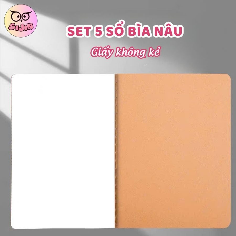 [Tặng Sticker] Set 10 Vở ghi Chép A5/B5, Sổ Khâu Gáy, Sổ Bìa Kraft Nâu Đen Giấy Dặn, Chống Lóa