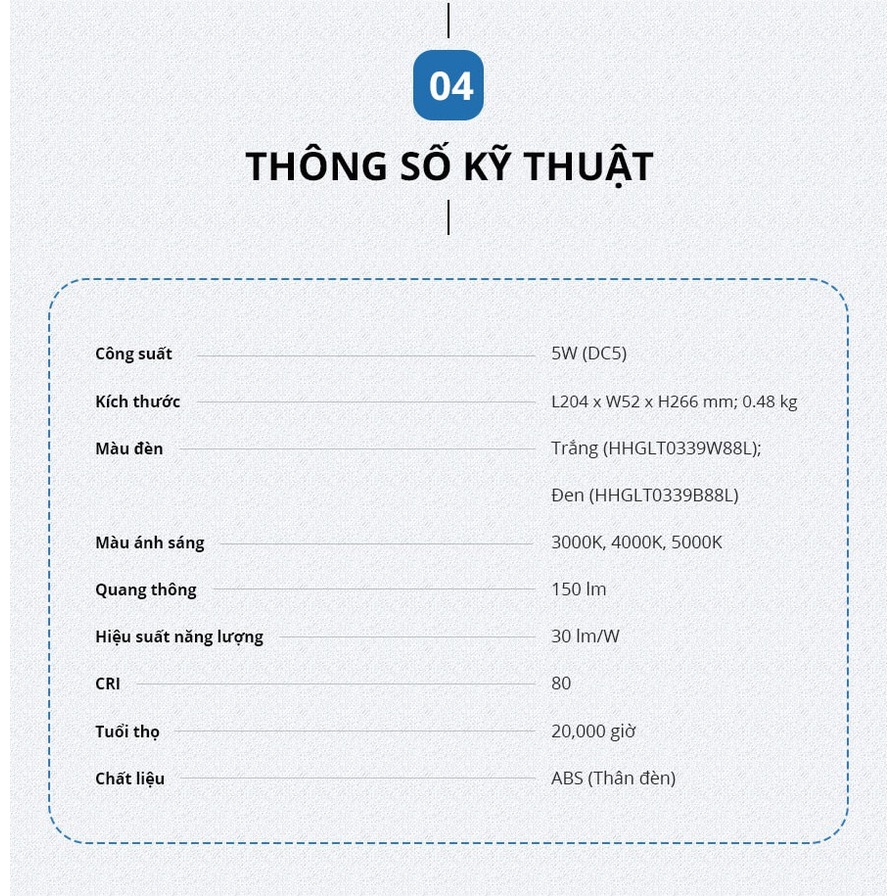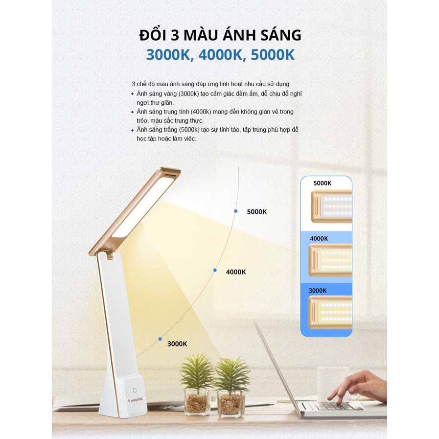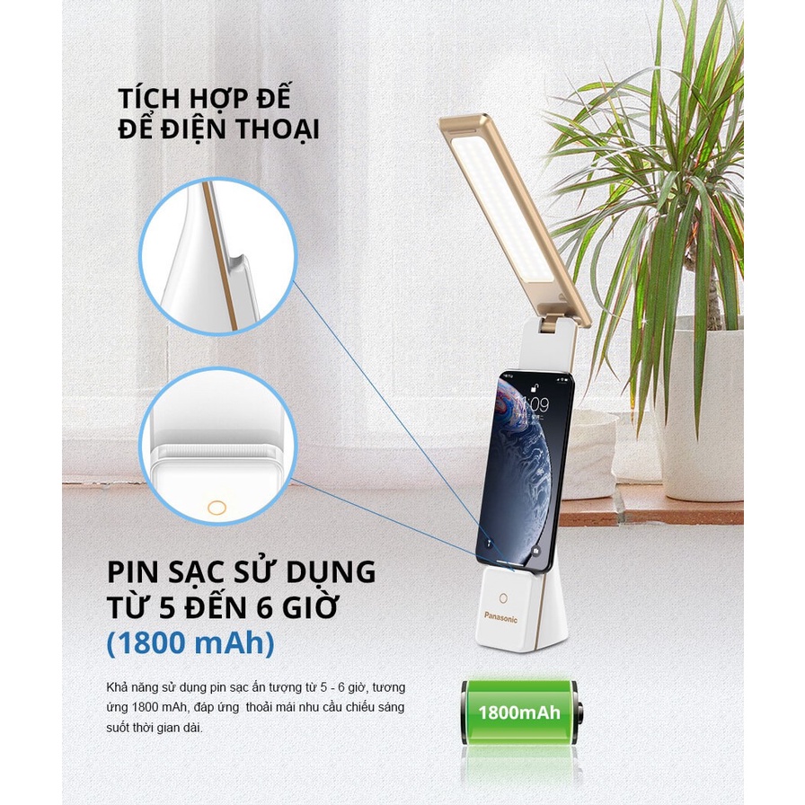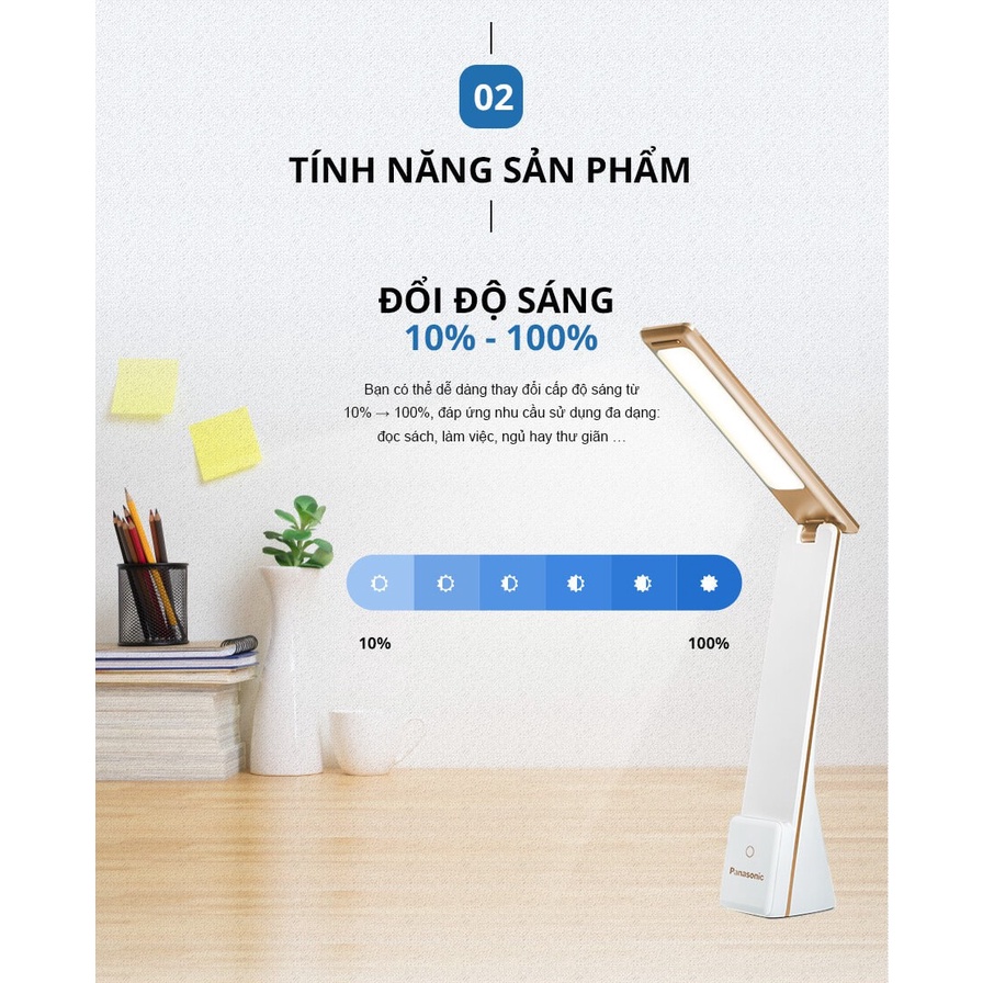 Đèn Bàn Pin sạc PANASONIC 5W Nhỏ gọn, chạm cảm ứng, không ánh sáng xanh, cổng sạc Type C