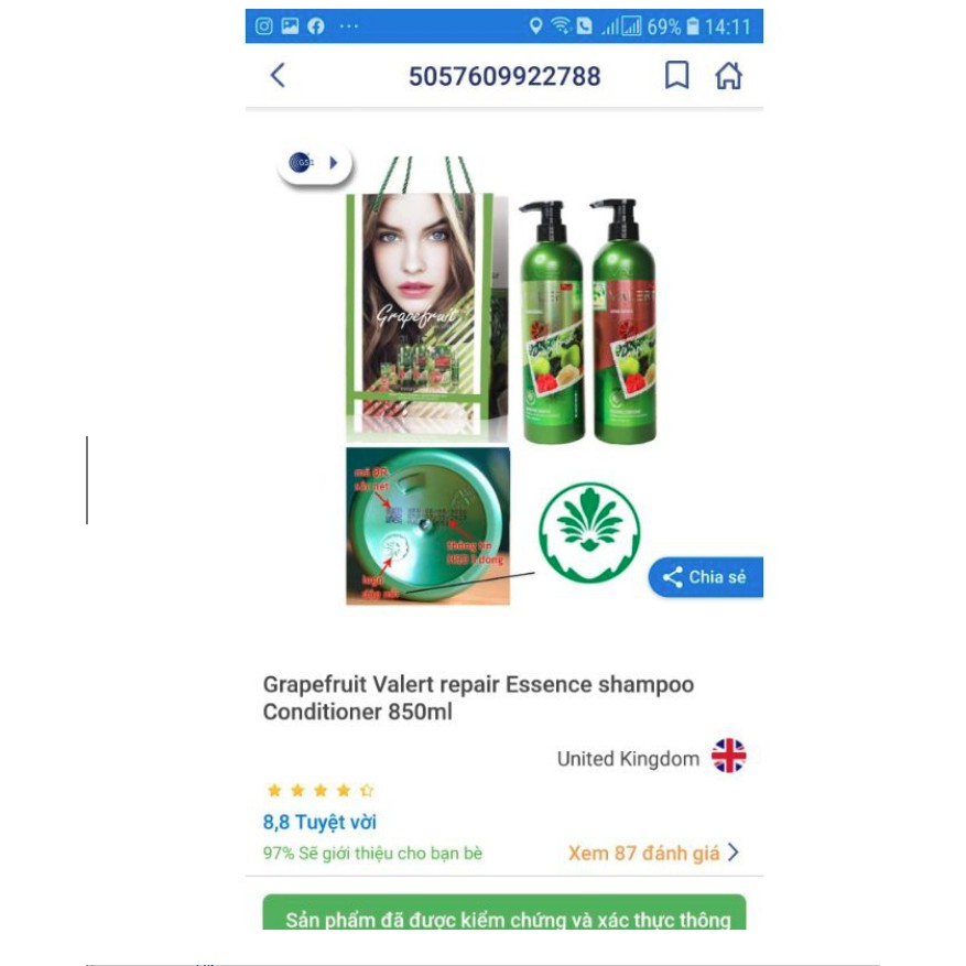 Dầu Gội Xả Bưởi Chính Hãng Anh 850ml (combo 2 lọ)