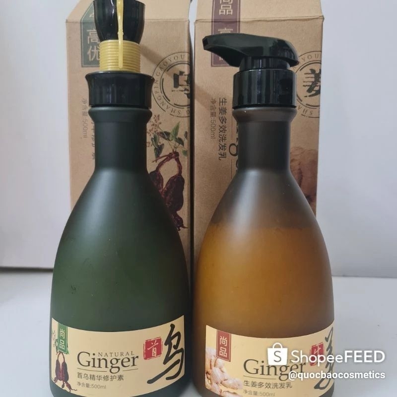 Cặp dầu gội Gừng Thiên Nhiên Ginger Natural 500ml tinh chất gừng và hà thủ ô