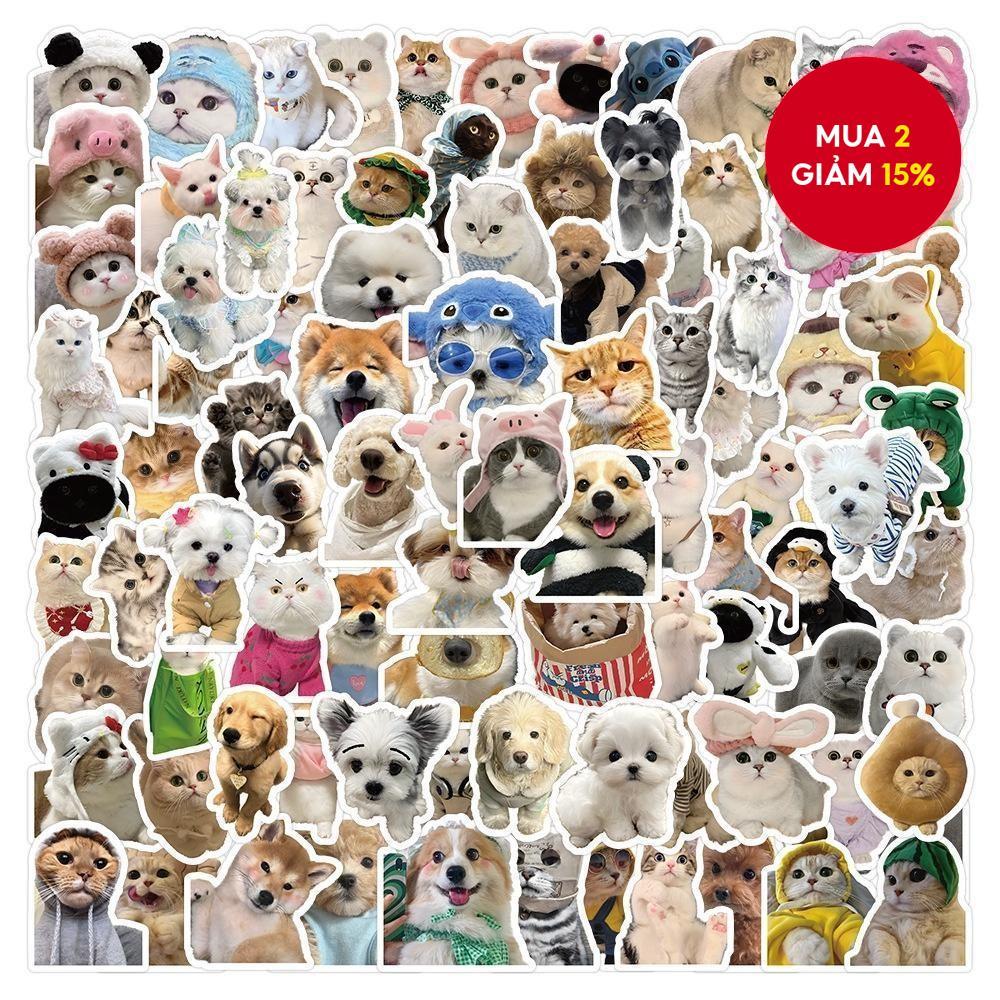 Tcuo 200 Miếng Dán Thú Cưng Dễ Thương Ngộ nghĩnh Chó Con Và Mèo Con - Đề Can Cho Mũ Bảo Hiểm, Xe Đạp, Tài Khoản Tay
